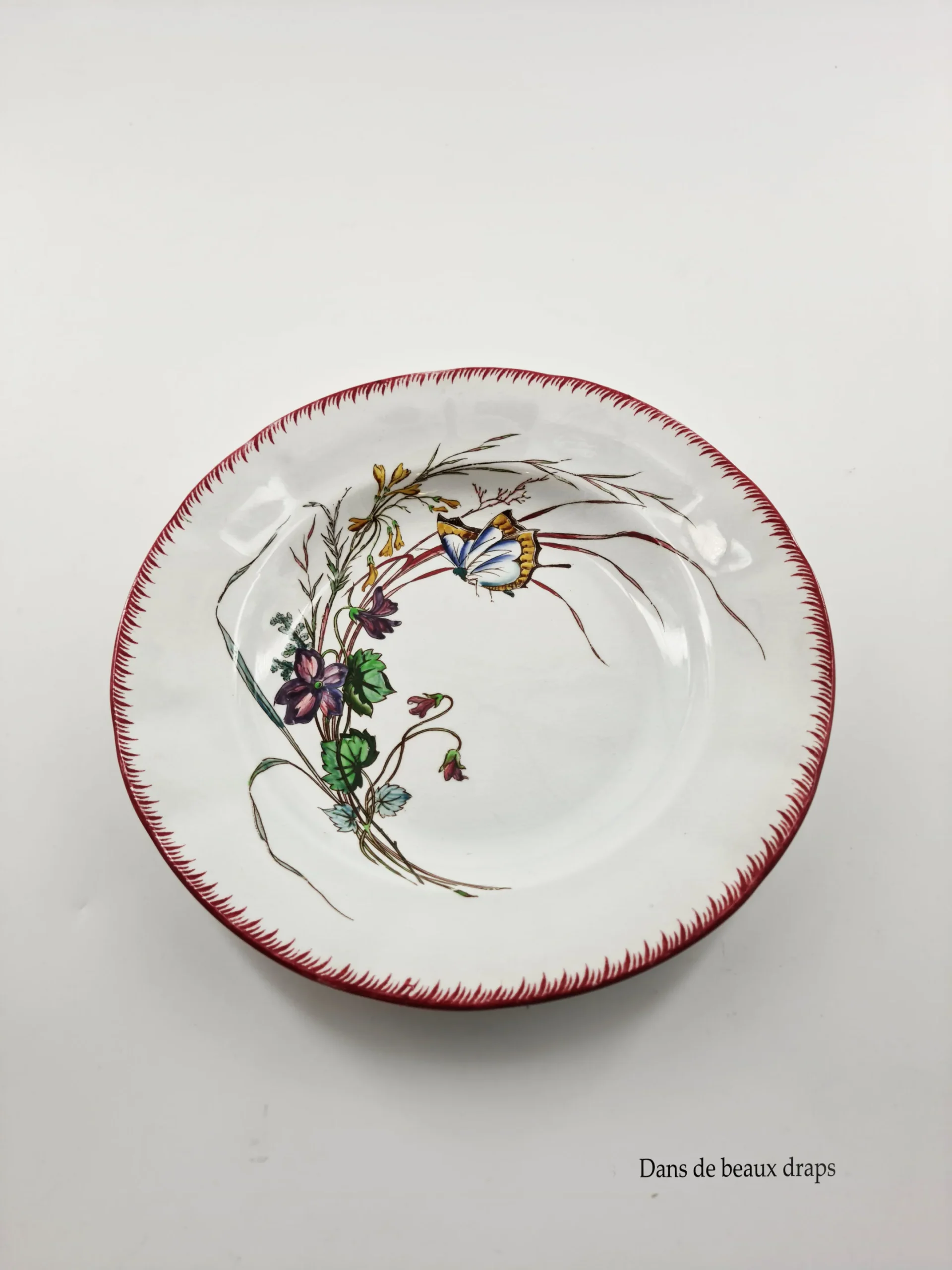 Assiette creuse en faïence de Sarreguemines, modèle Papillon.