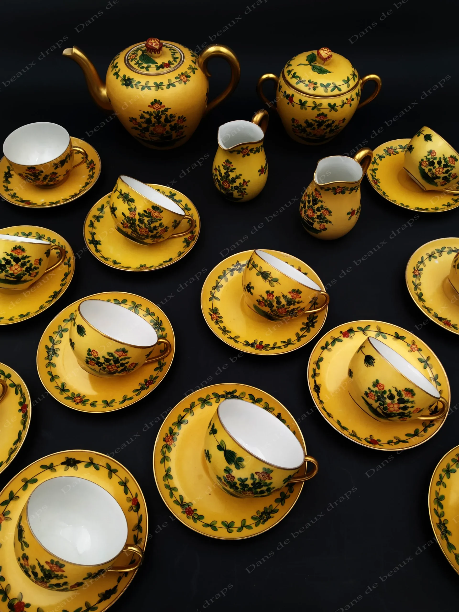 Magnifique service à thé en porcelaine de Limoges,réalisé pour la maison Delvaux,Paris,28 pièces.