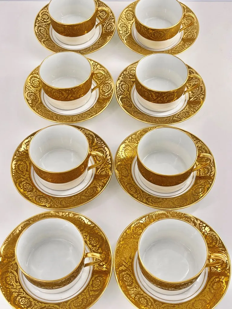 Magnifique suite de 8 paire-tasses à thé en porcelaine de Limoges