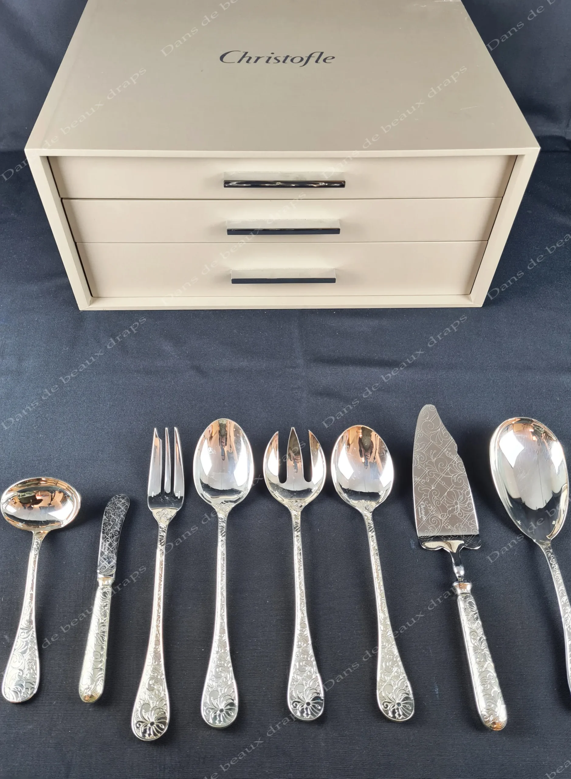 Magnifique ménagère en métal argenté Christofle modèle Jardin d’Eden,140 pièces