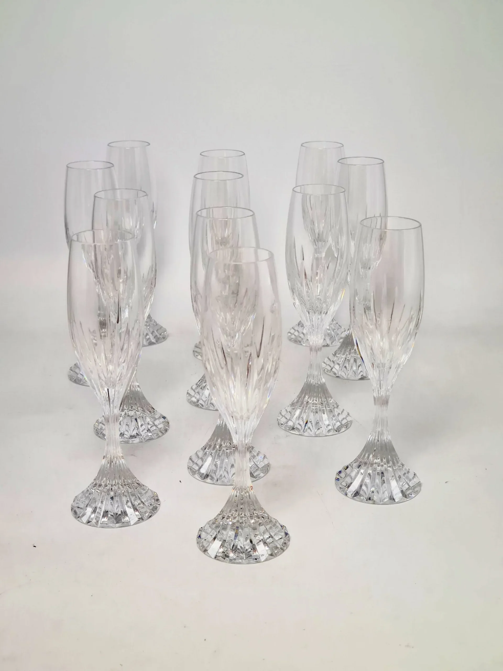 12 magnifiques flûtes à champagne en cristal de Baccarat, modèle Massena.