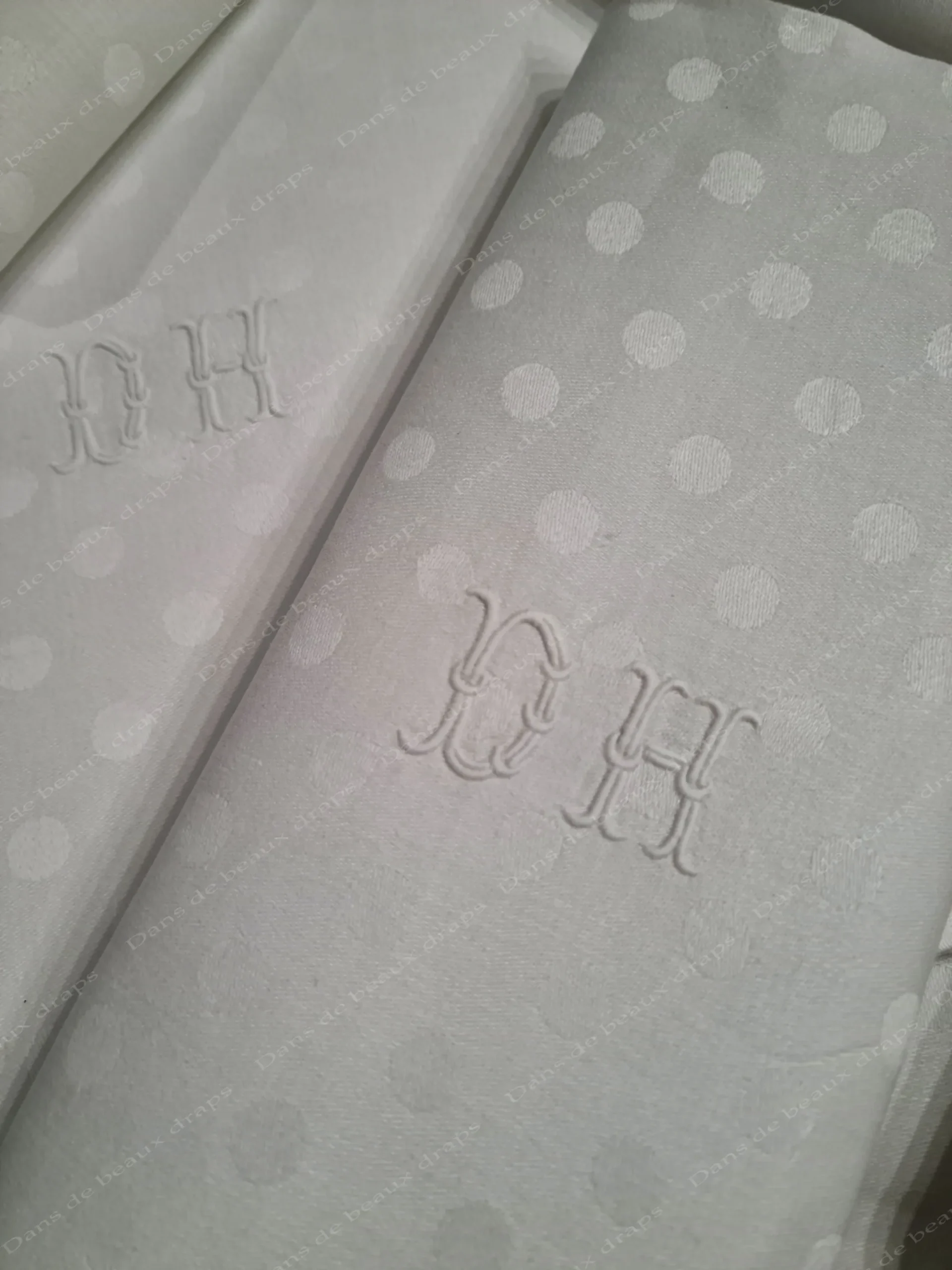 Au centre, joli monogramme DH ,brodé main en relief.