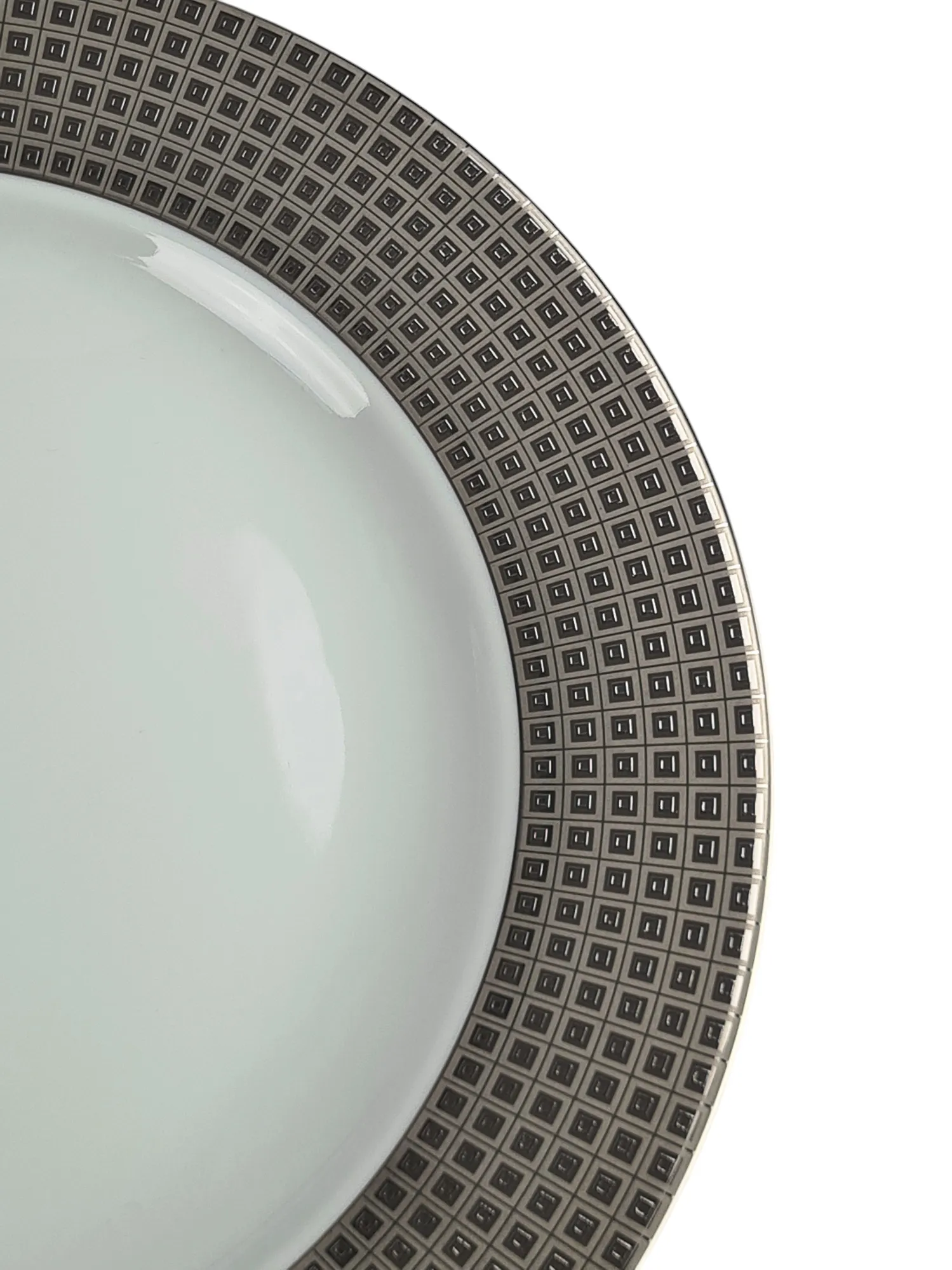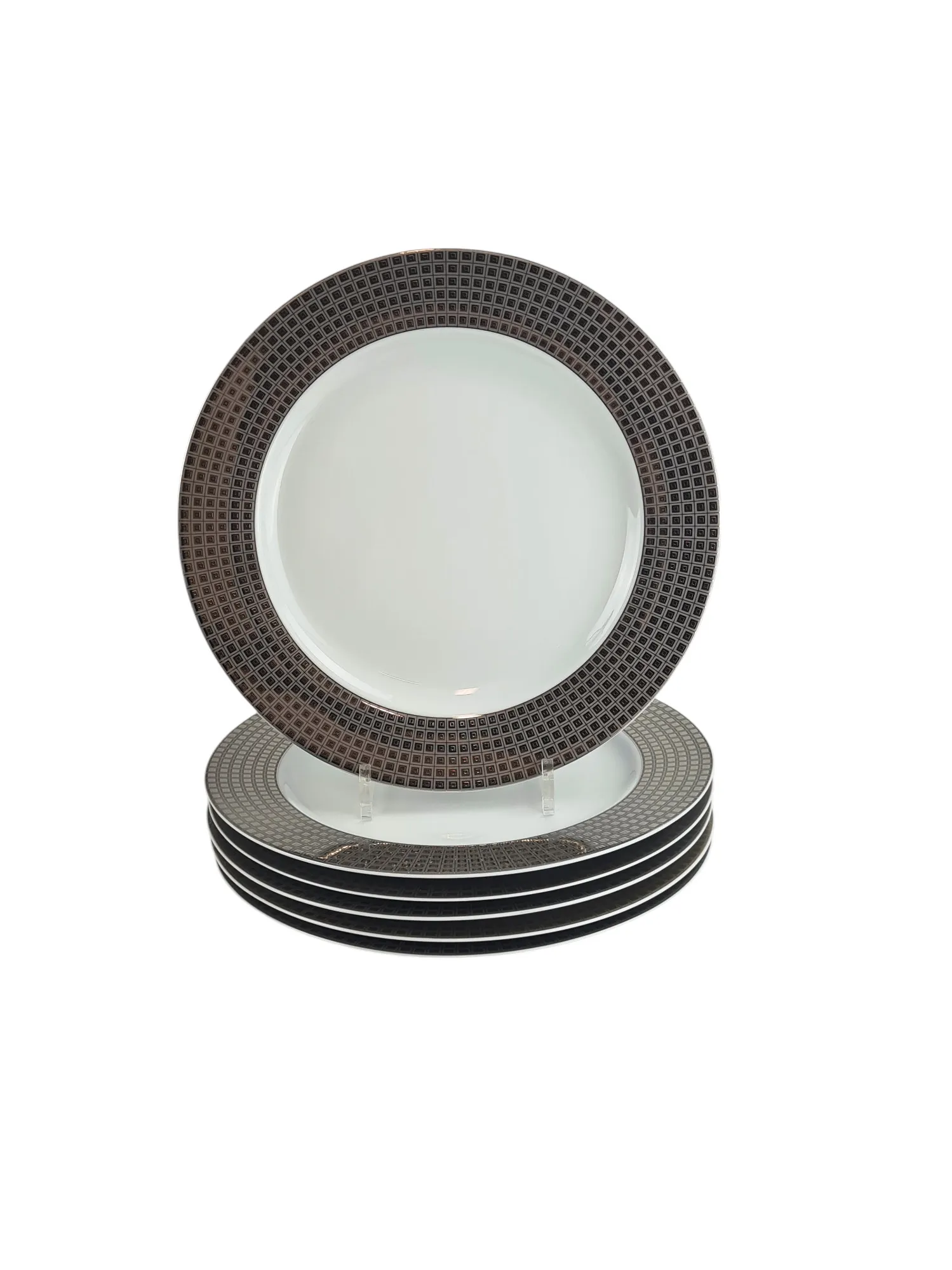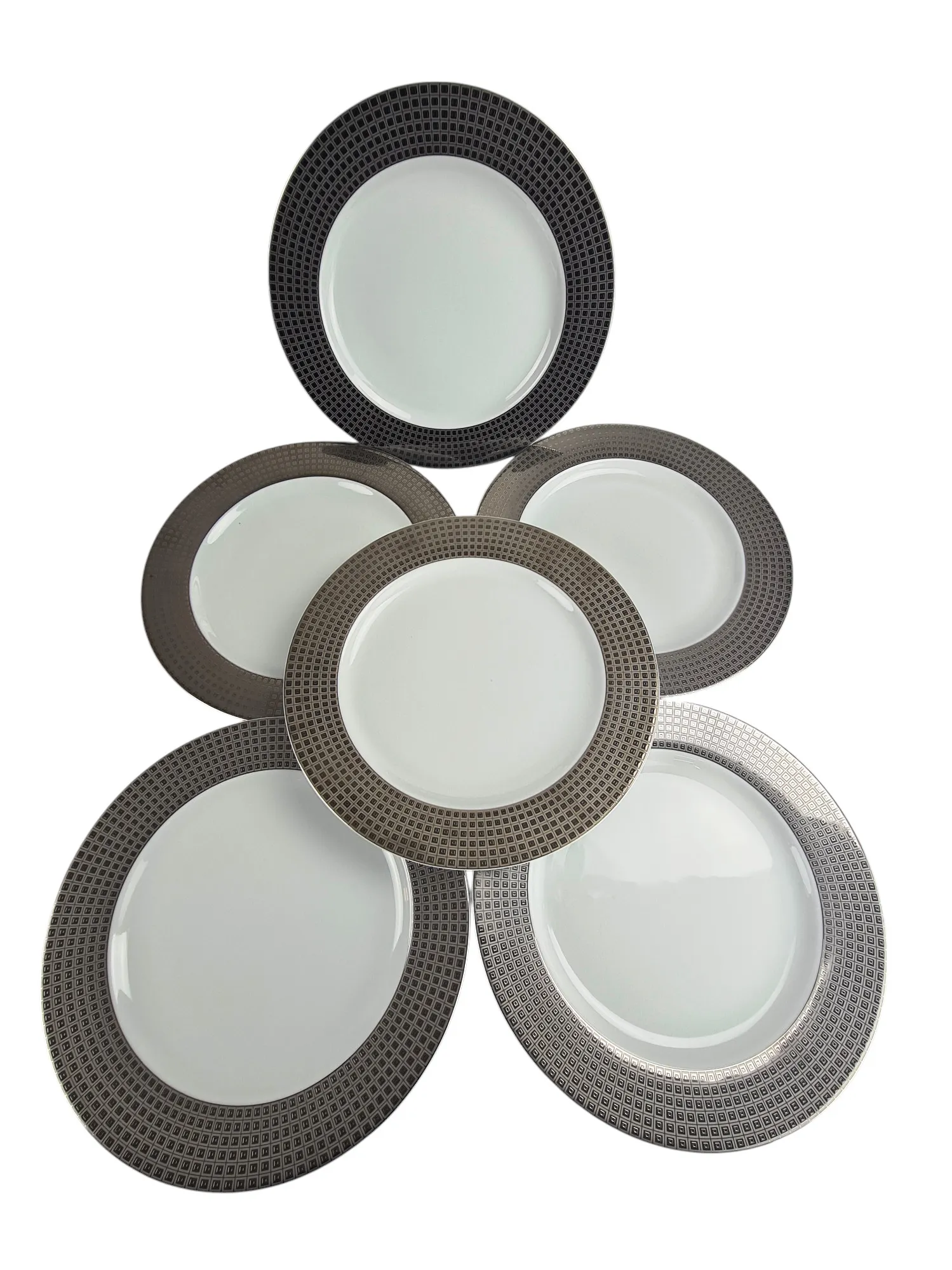 6 assiettes de présentation en porcelaine de Limoges, maison Bernardaud, modèle Athéna Platine.