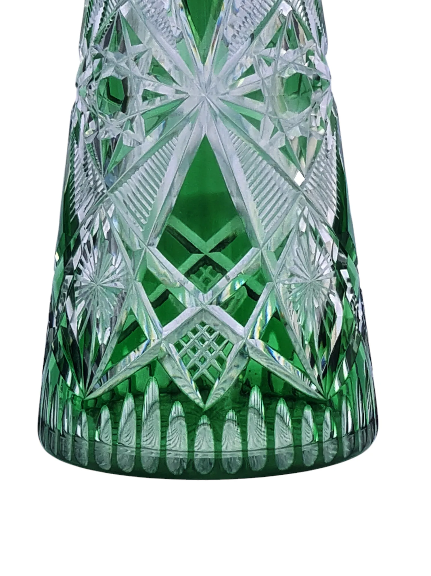 Belle carafe en cristal doublé taillé en cristal de Saint Louis de couleur verte.