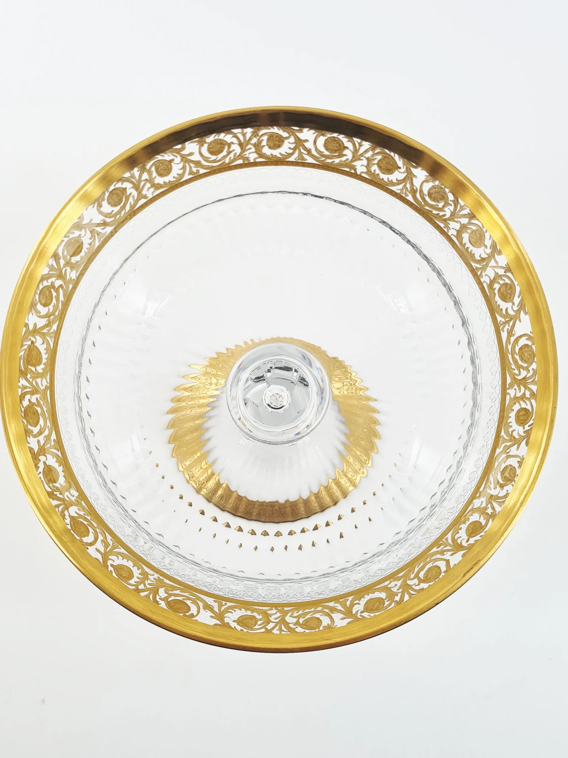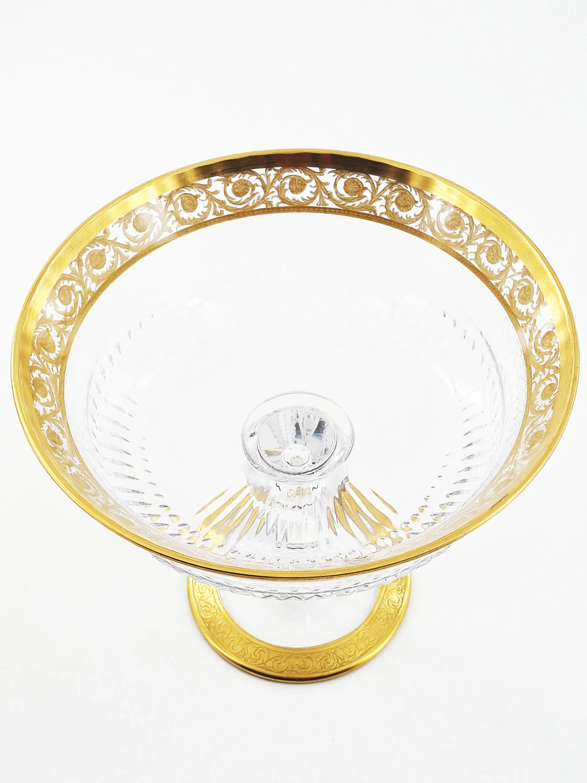 Magnifique coupe à fruits ou centre de table en cristal de Saint Louis, modèle Thistle or.