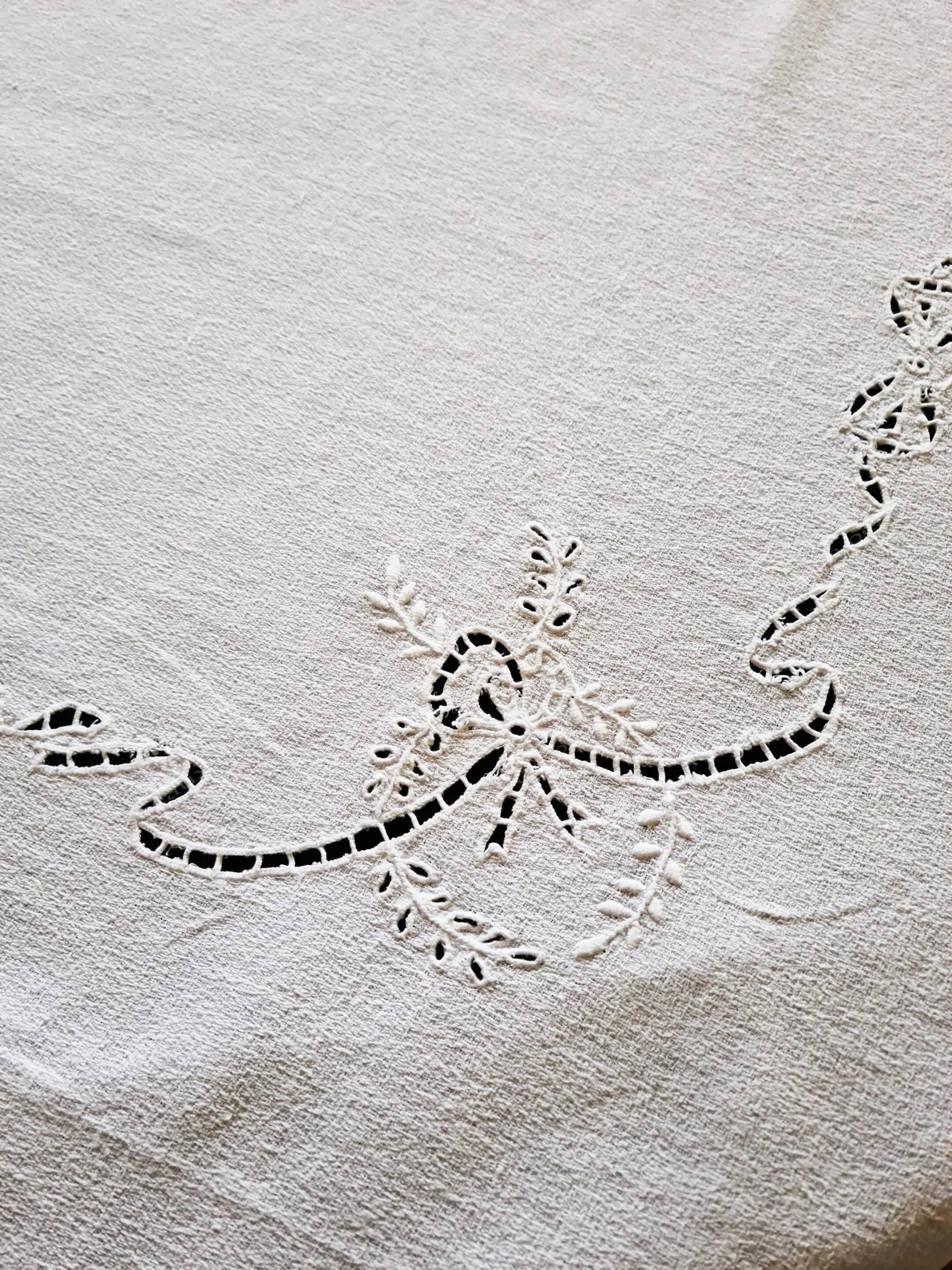 Nappe carrée en crêpe de lin à décor floral monogramme MD.