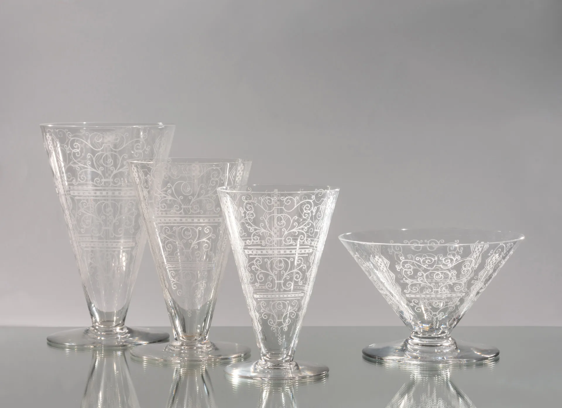 Service de verres produit par les Cristalleries de Baccarat dans les années 30.