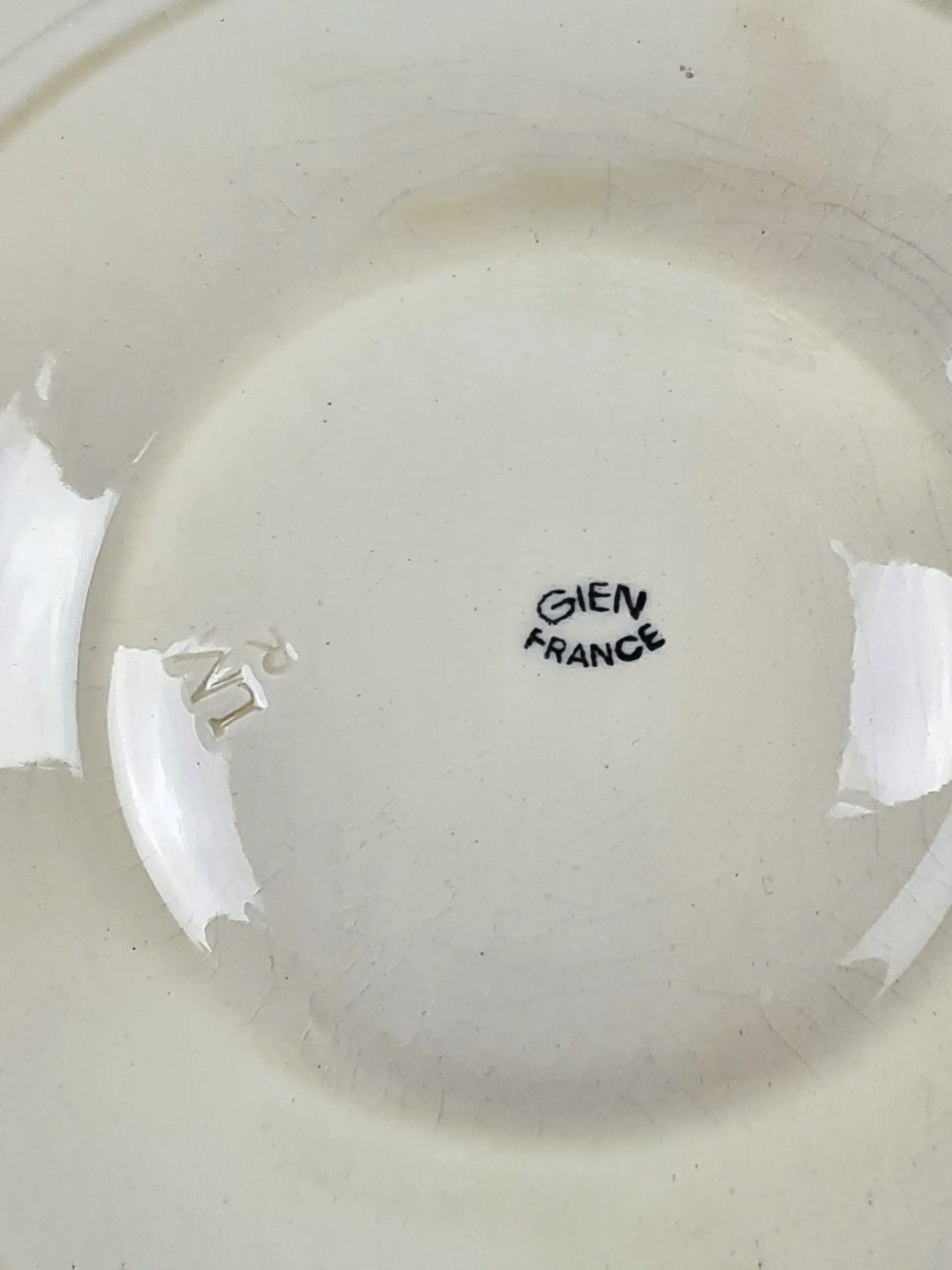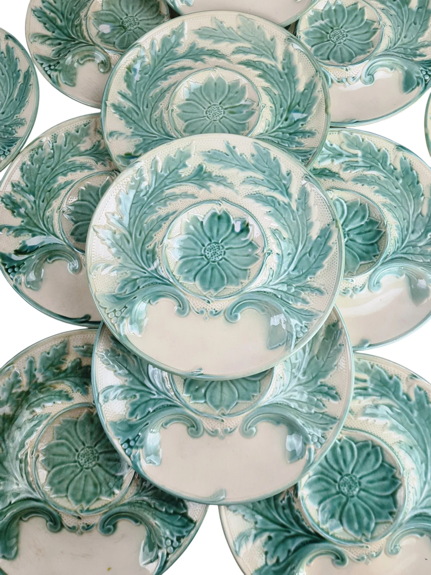 Suite de 12 assiettes à artichaut en faïence de Gien, XXème.