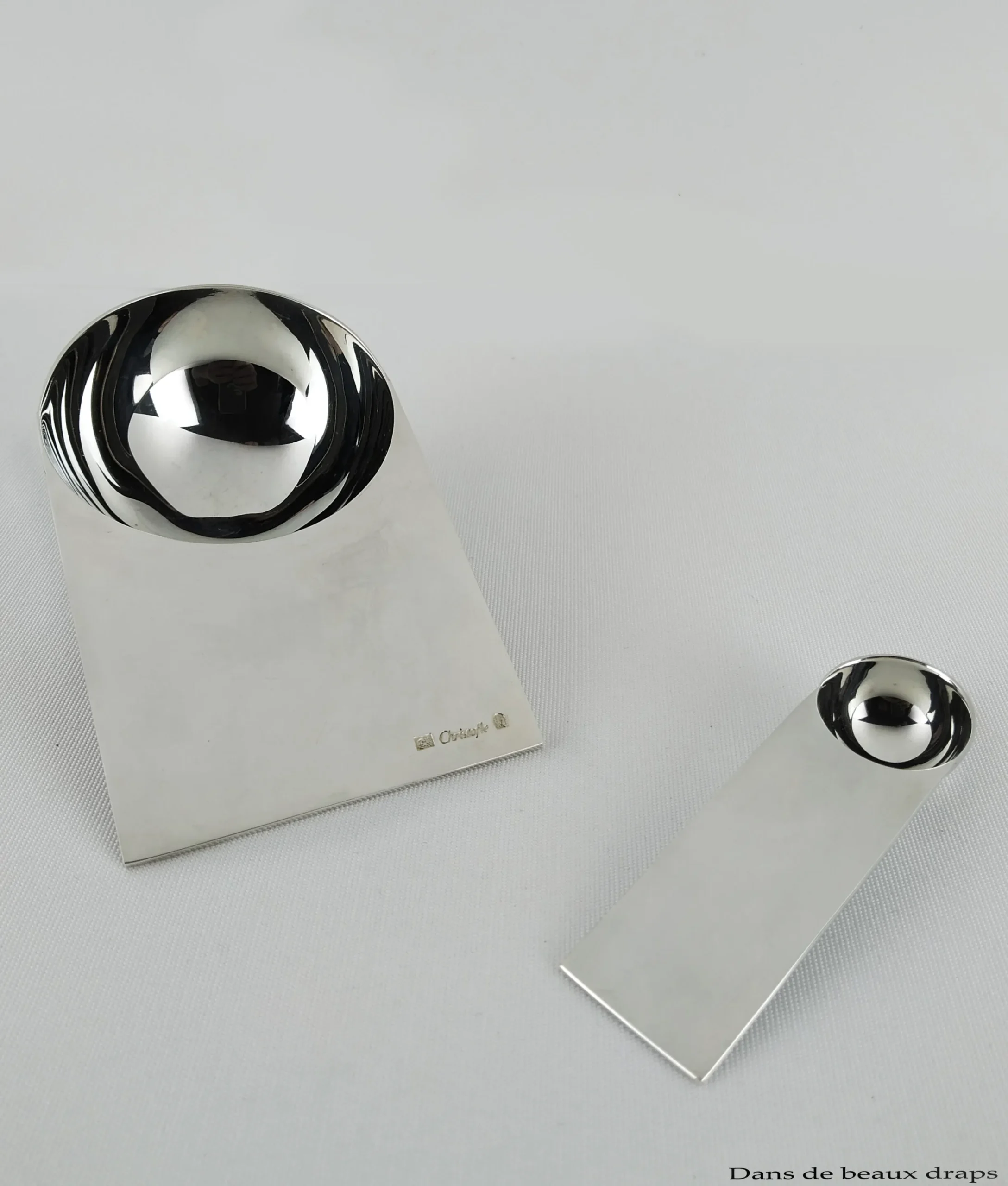 Bel ensemble de 4 porte-couteaux en métal argenté, orfèvre Christofle, modèle Vertigo.