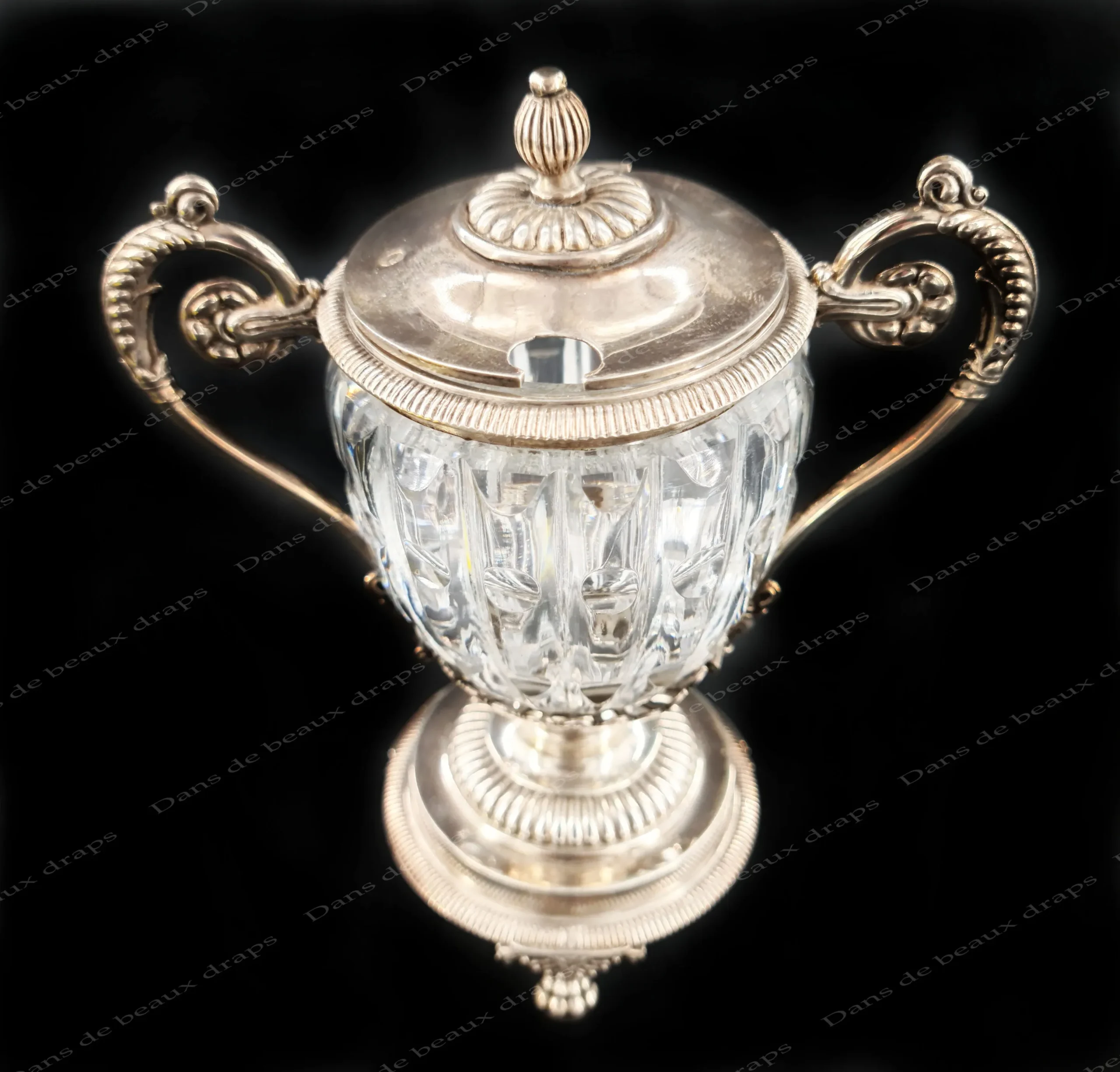 Joli moutardier en cristal et argent,poinçon vieillard.