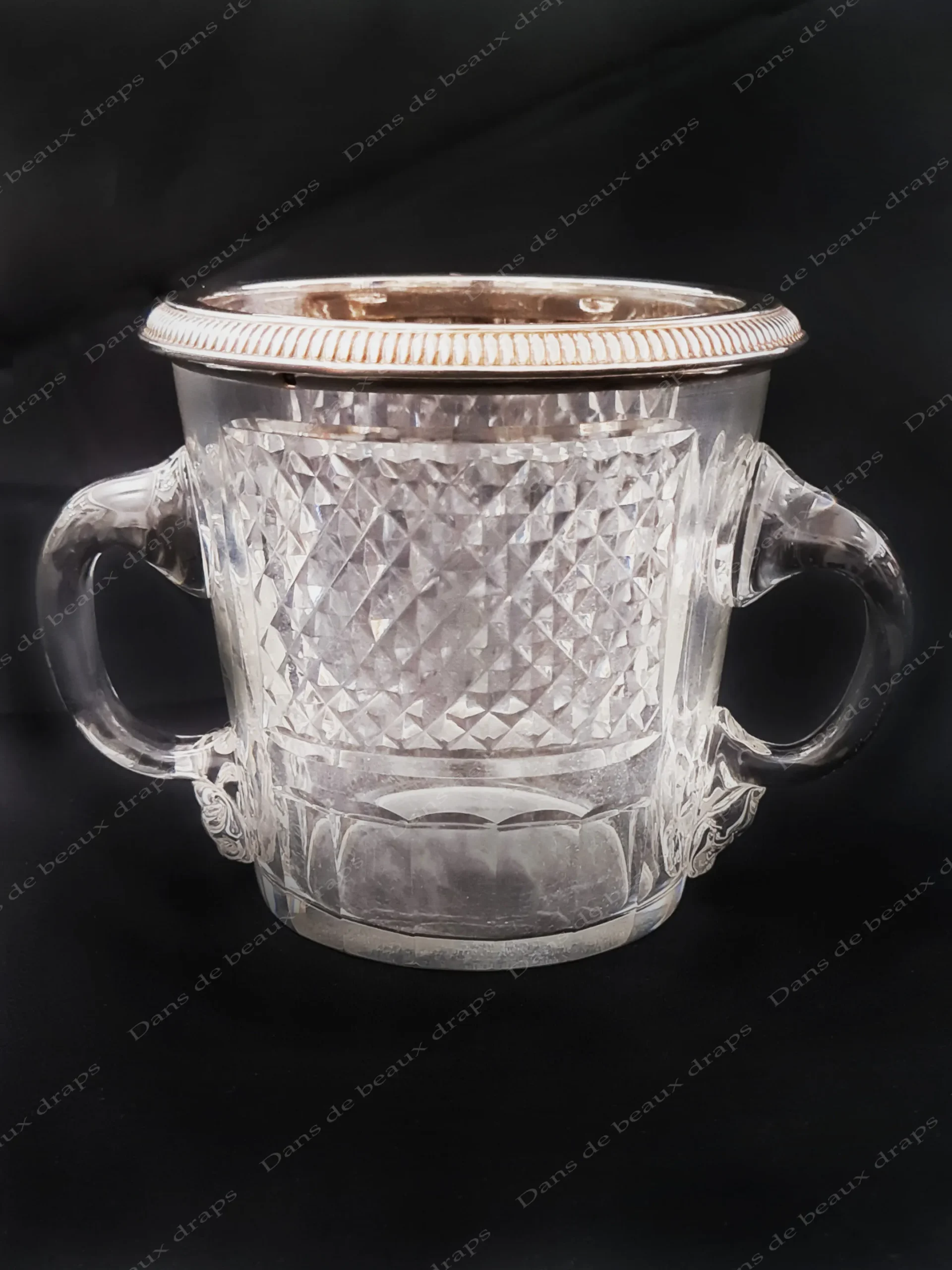 Joli seau à glaçons en argent et cristal taillé Baccarat fin XIX ème,orfèvre Odiot.