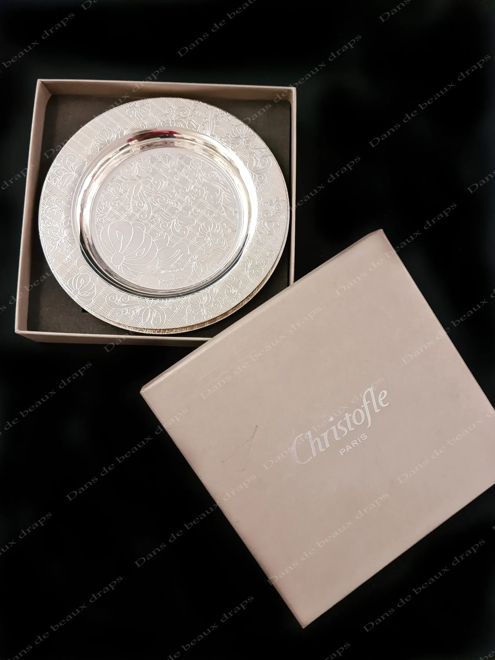Paire de dessous de bouteille en métal argenté à galerie,modèle Jardin d’Éden,Christofle,Paris.