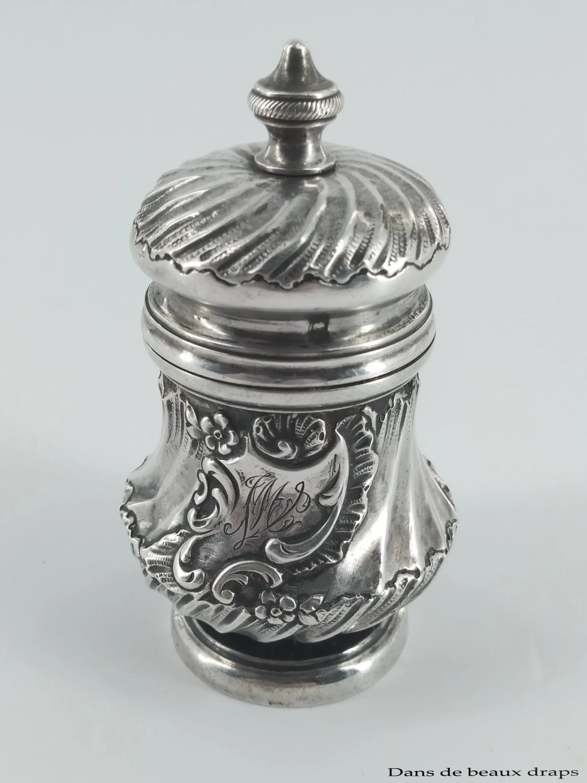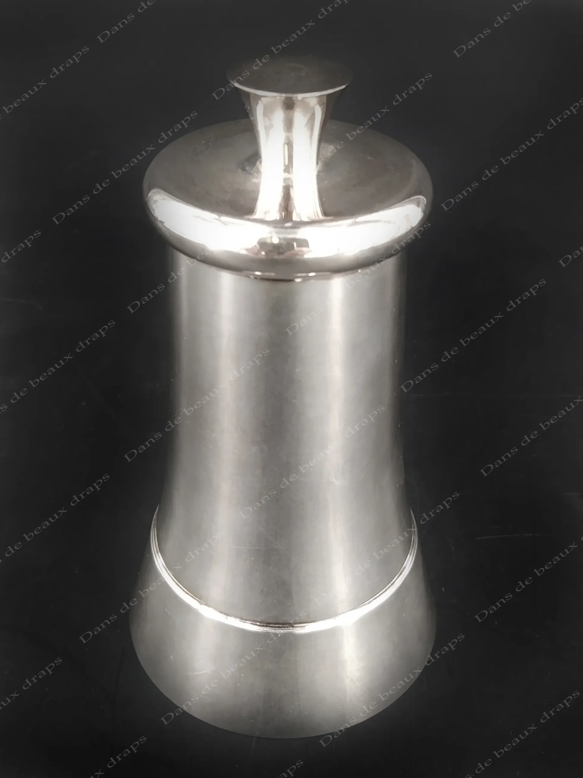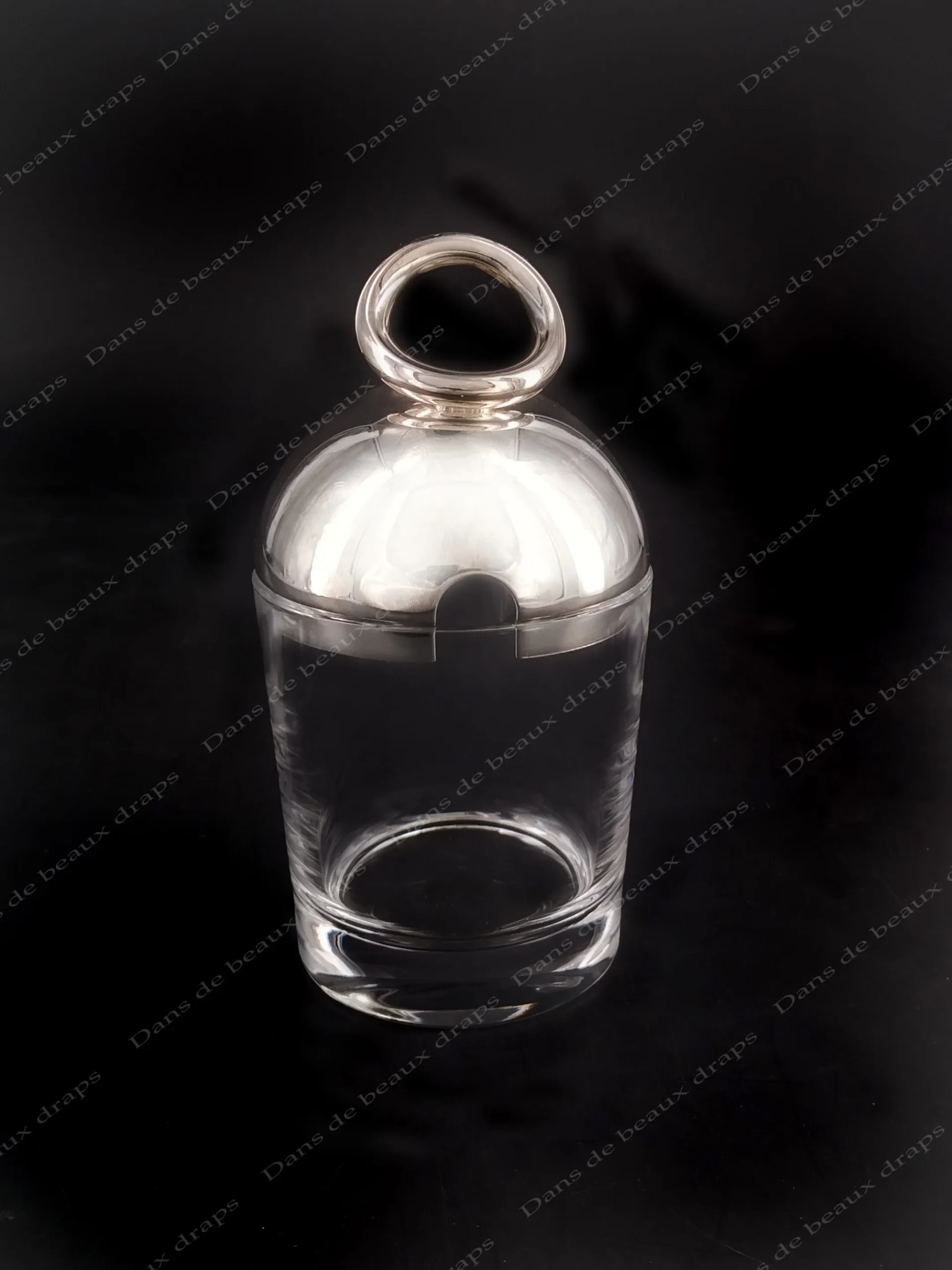 Moutardier en cristal et métal argenté,modèle Vertigo,Christofle,Paris.