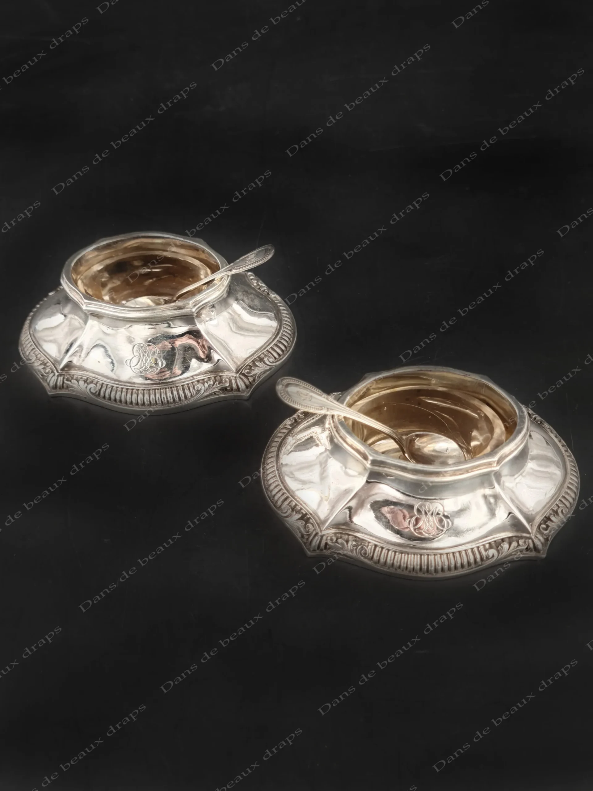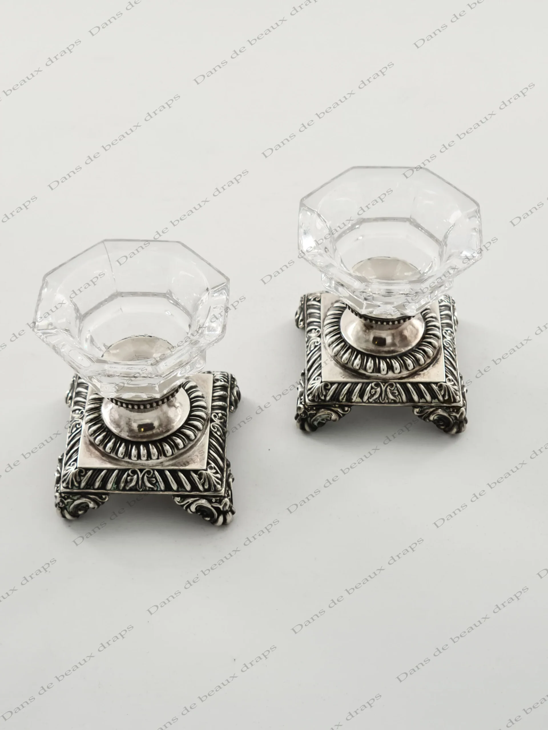 Jolie paire de salerons en cristal et argent,poinçon vieillard,XIX ème.