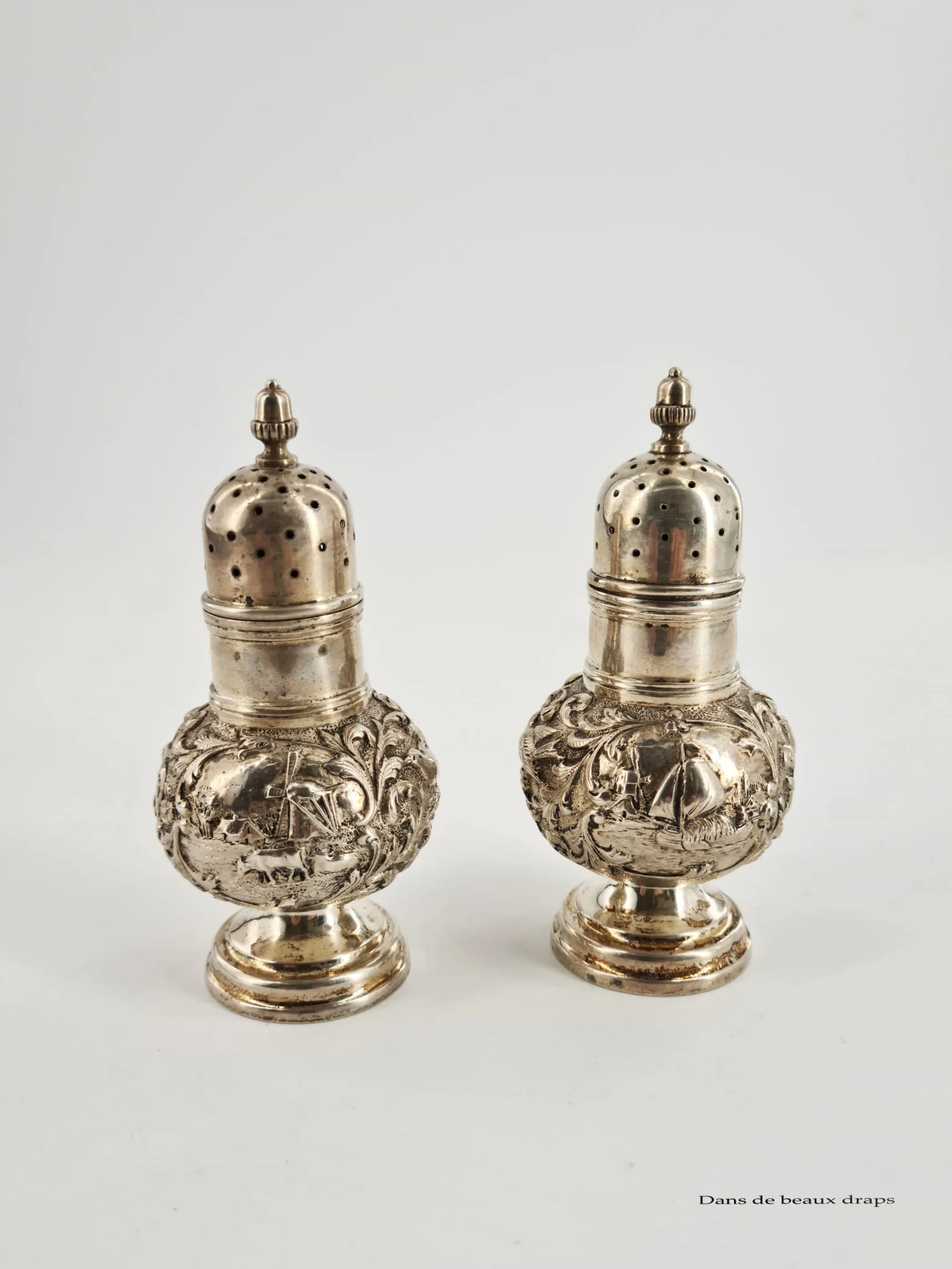 Jolie paire de dessous de bouteille en argent massif, Autriche Hongrie, XIX ème