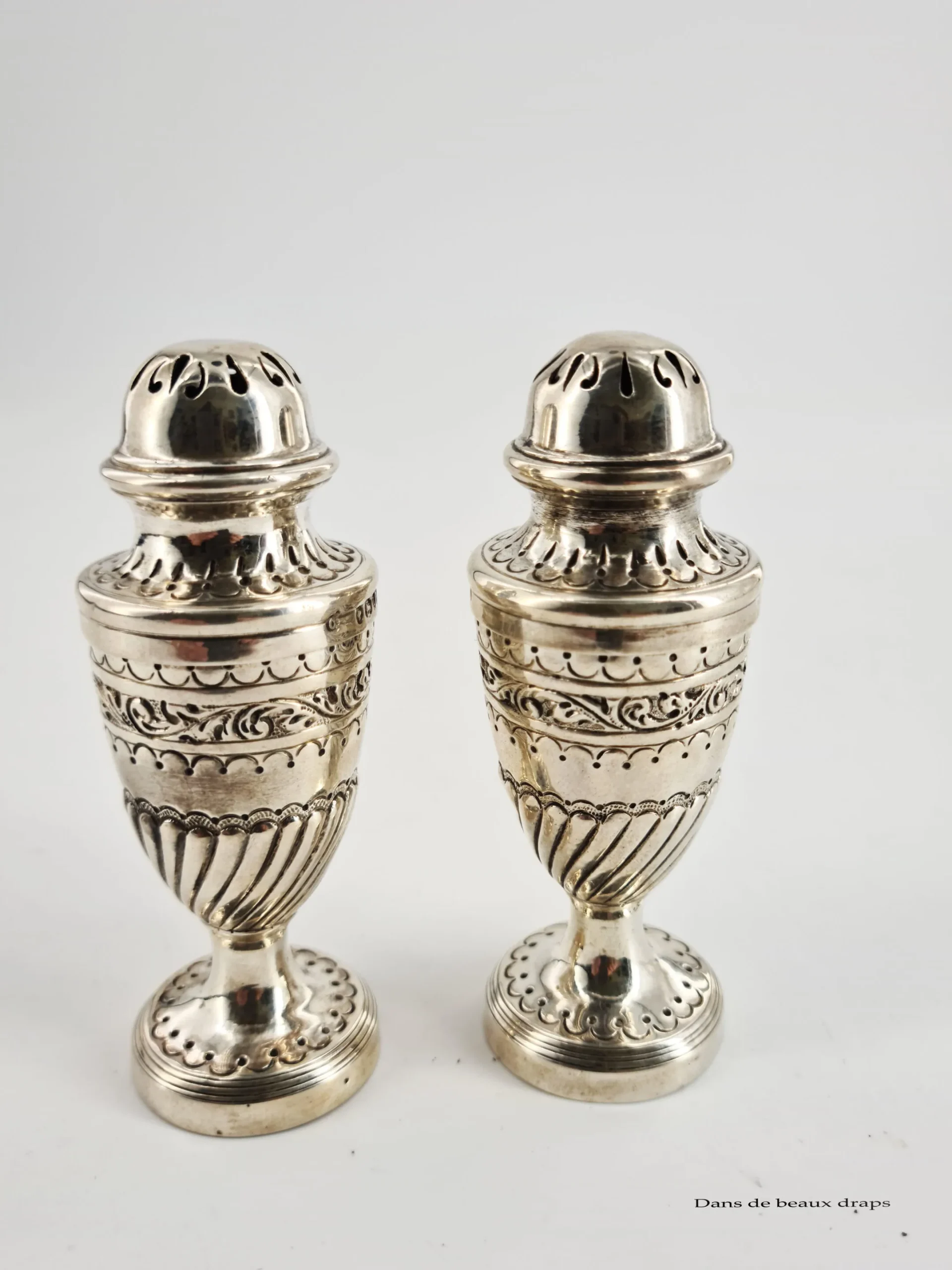 Jolie paire de salerons en argent, leur intérieur en cristal et leur pelle à sel,orfèvre Lapara,début XX ème.