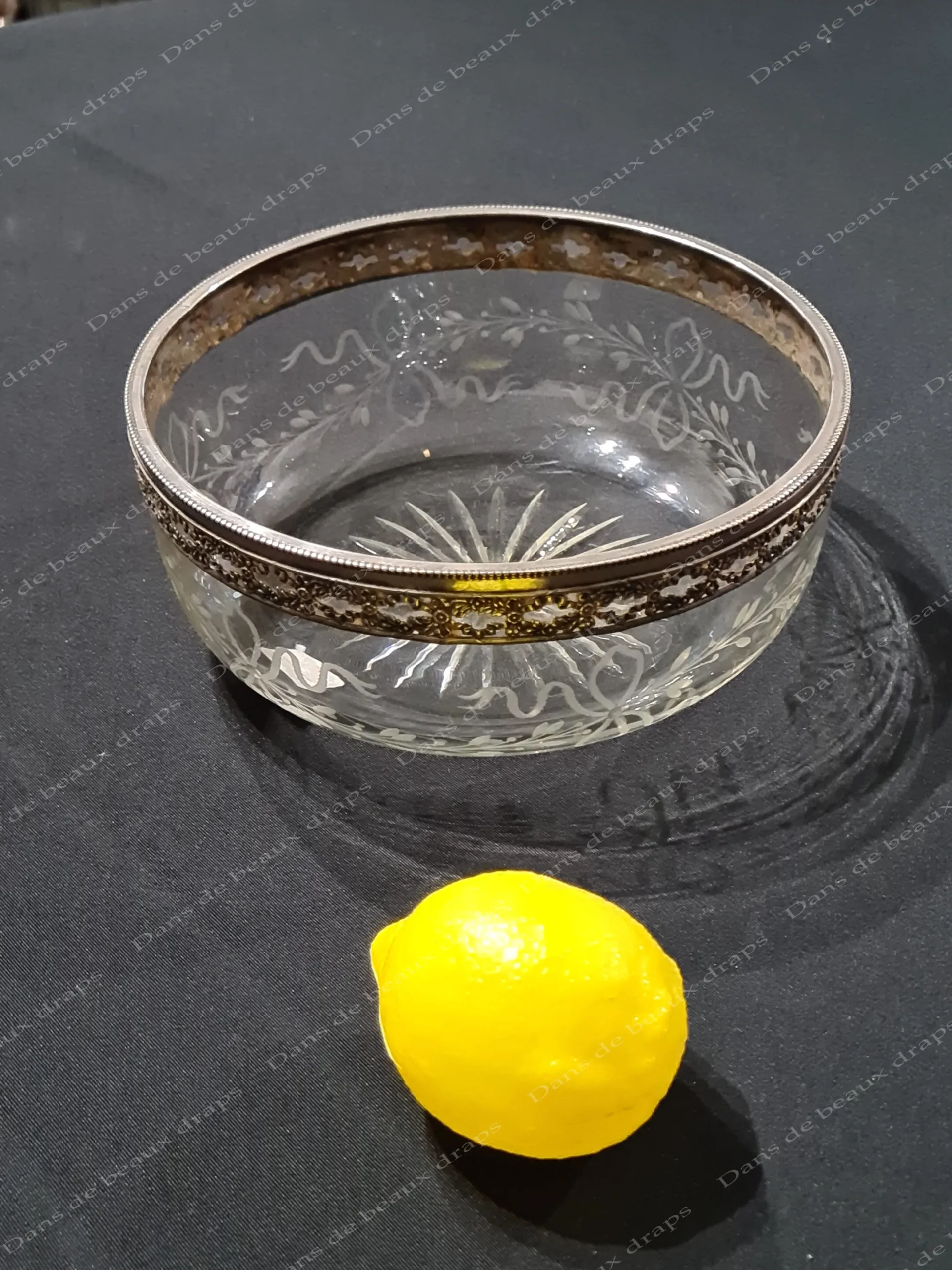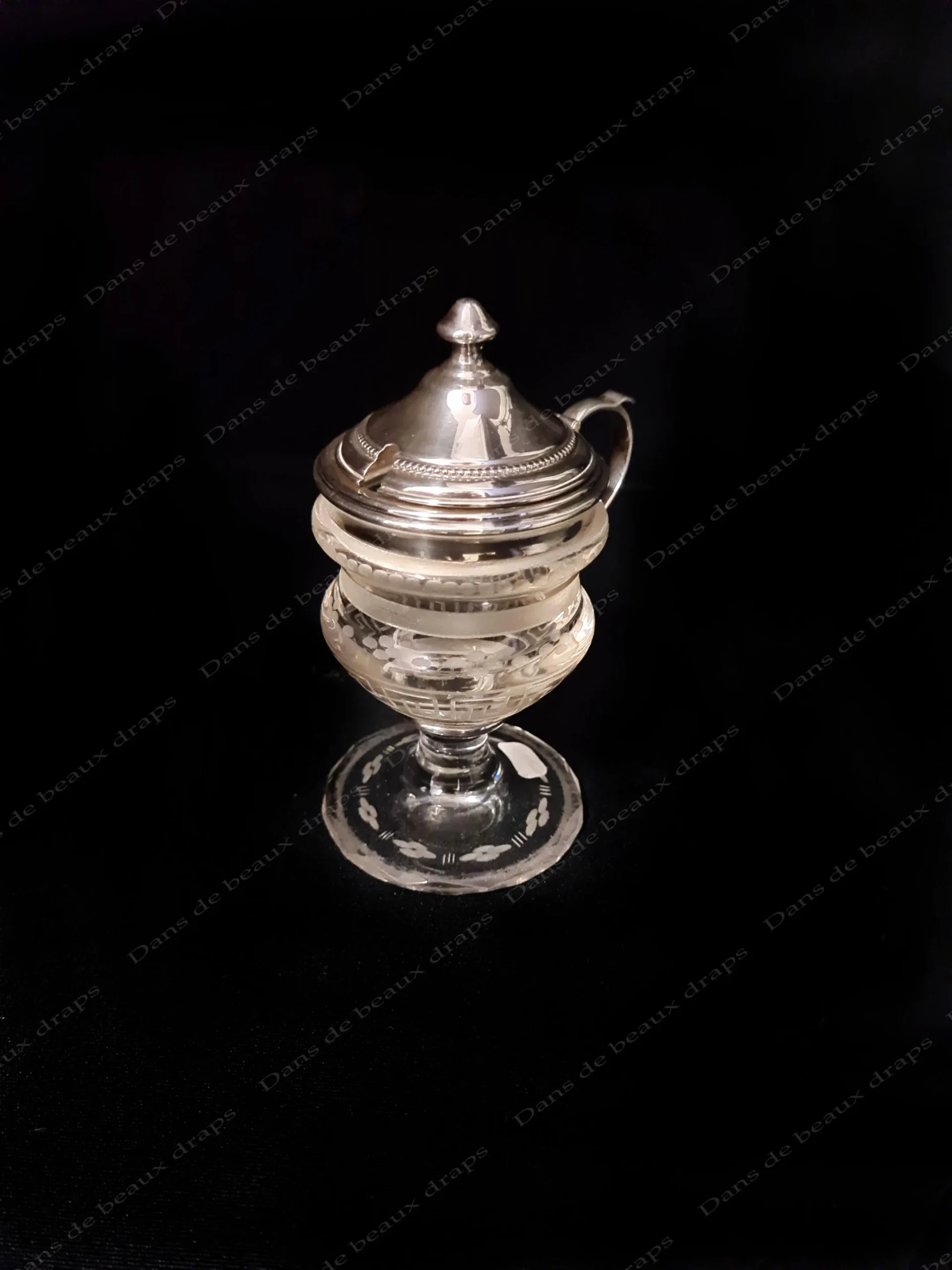 Ravissant moutardier en cristal gravé et argent,XIX ème.