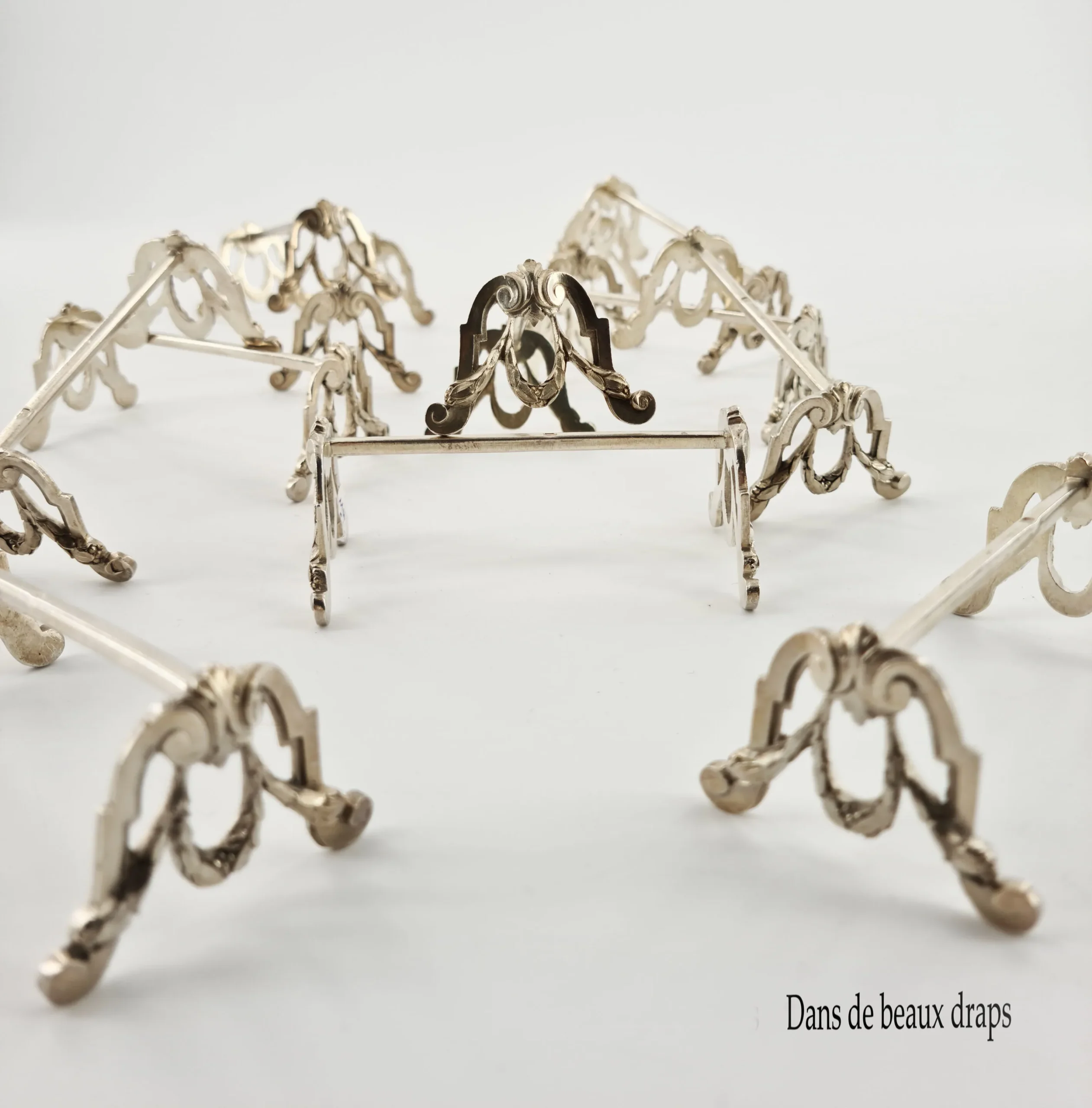 Rare suite de 12 porte-couteaux en argent à décor de draperies, poinçon minerve.
