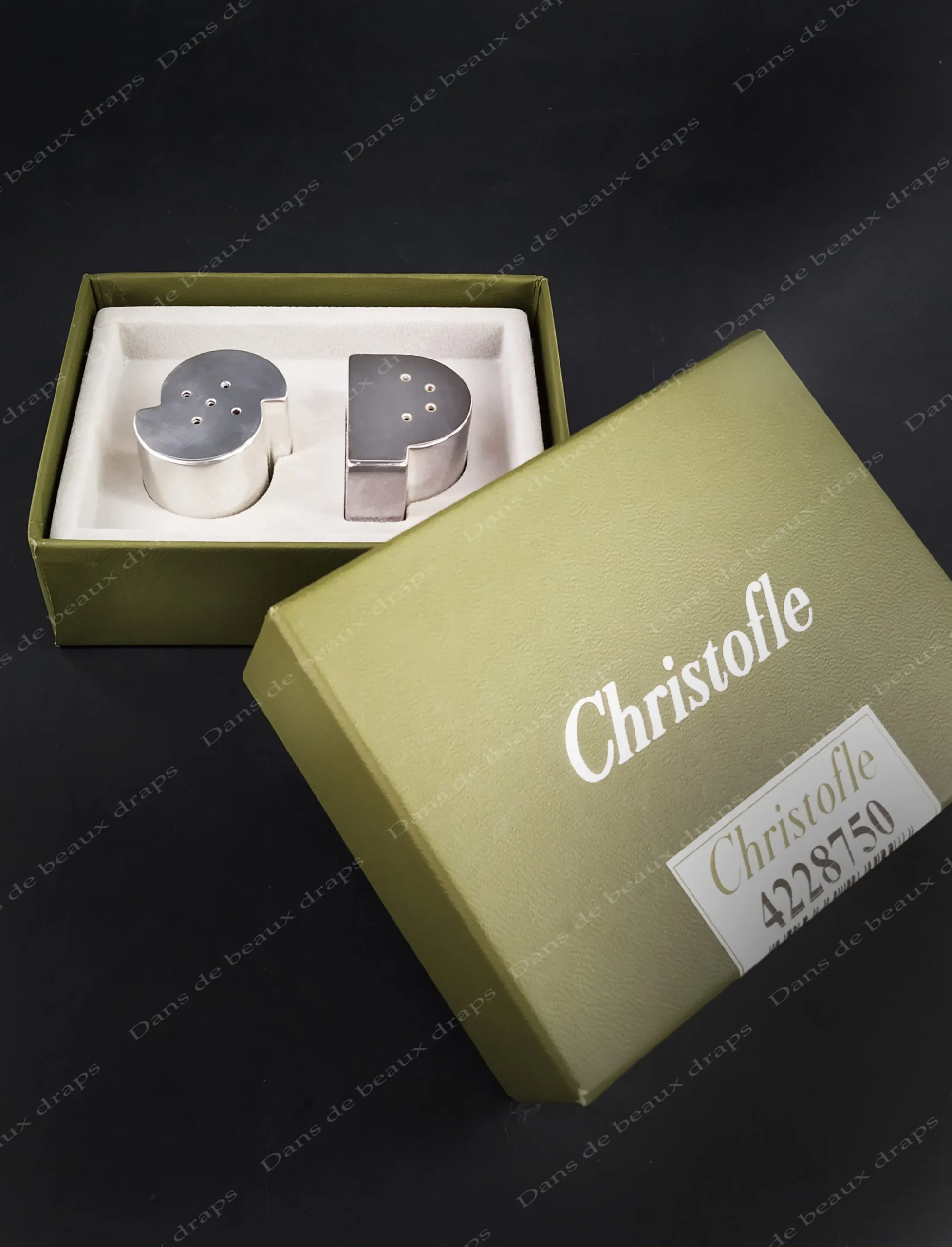 Salière et poivrier en métal argenté,modèle Ludique,Christofle,Paris.