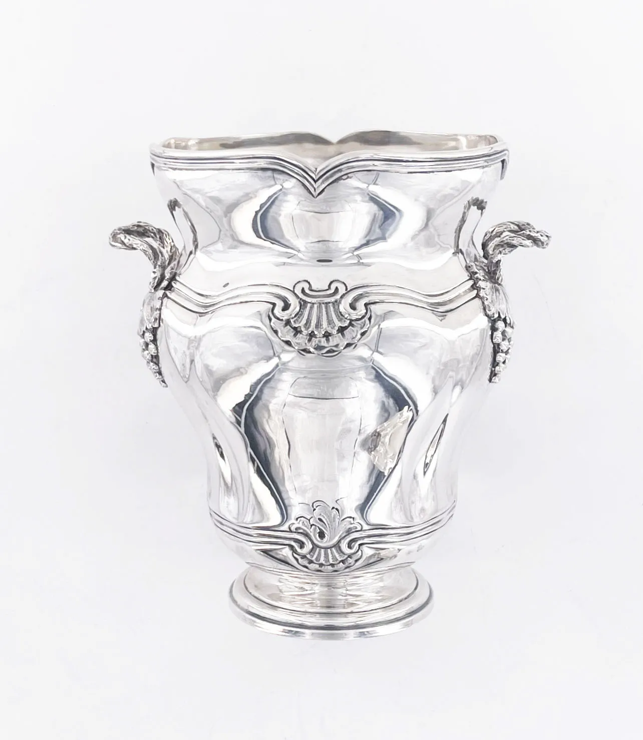 Seau à champagne à double prises en argent 800 millièmes, Italie XXème.