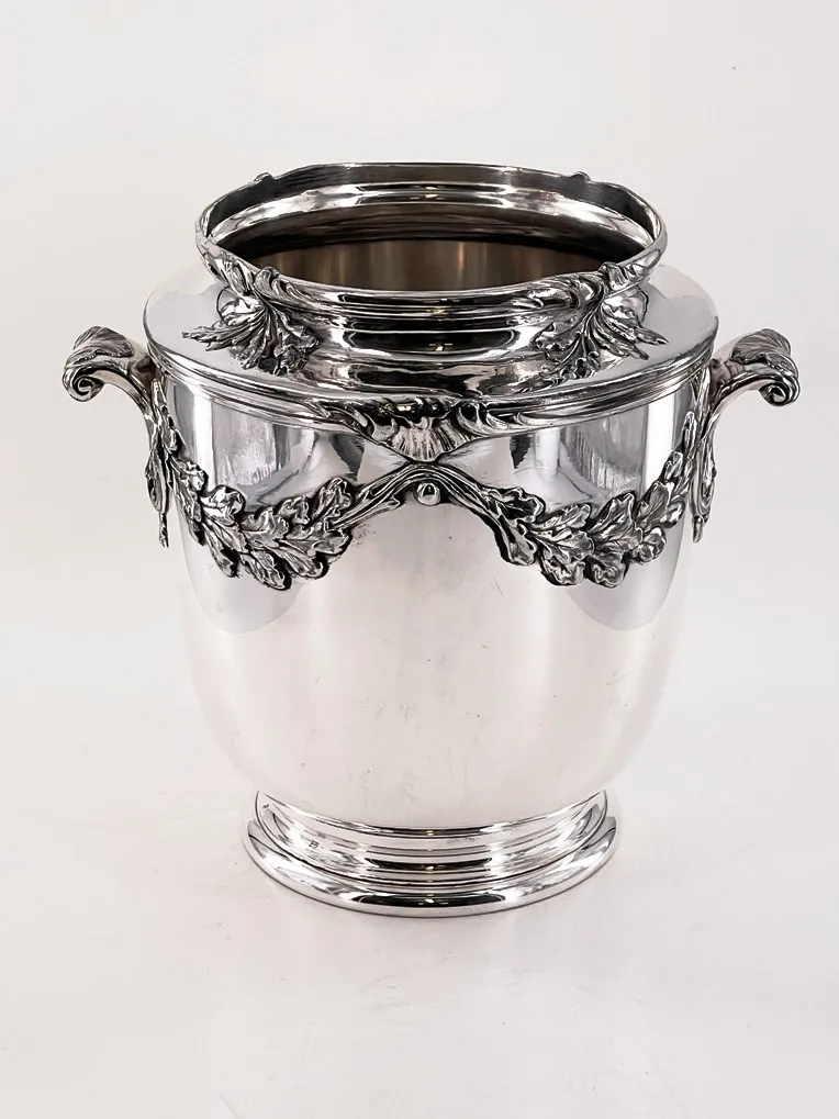 Seau à bouteille isotherme en métal argenté,orfèvre Christofle.