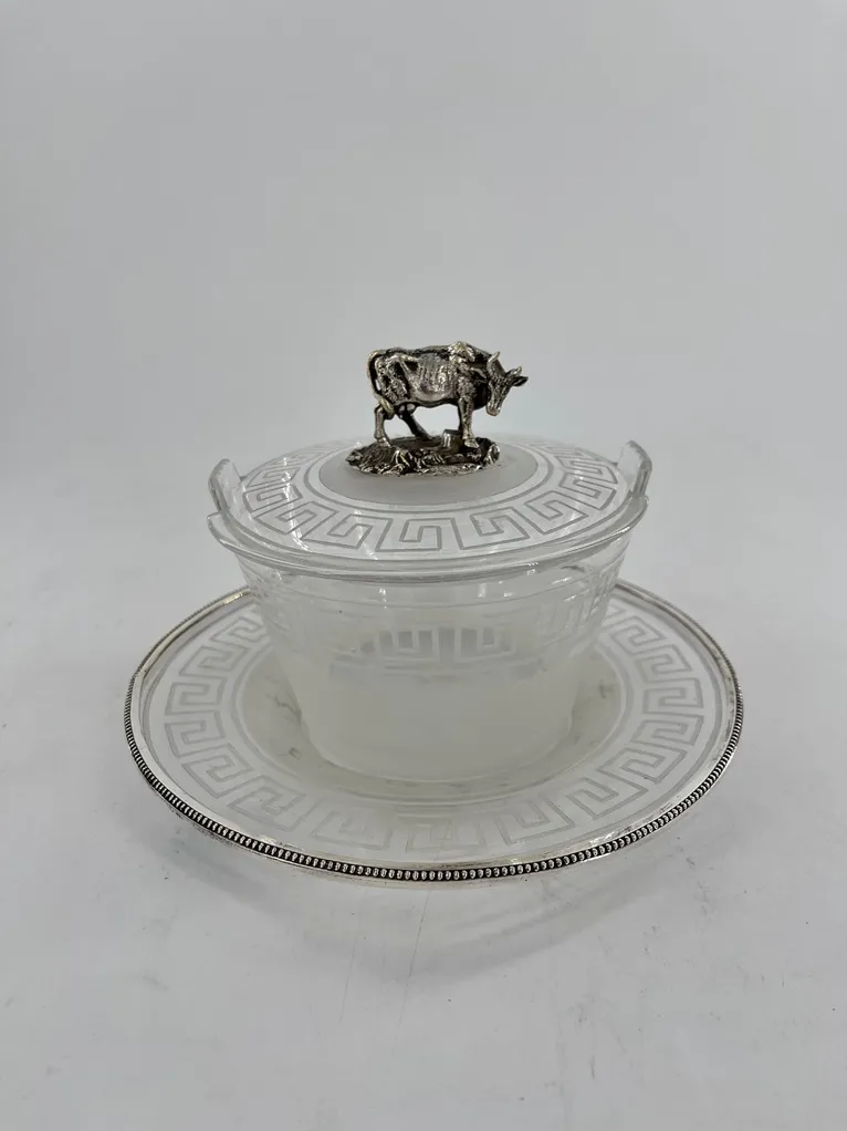 Très belle boite à fromage en cristal et métal argenté, début XXème
