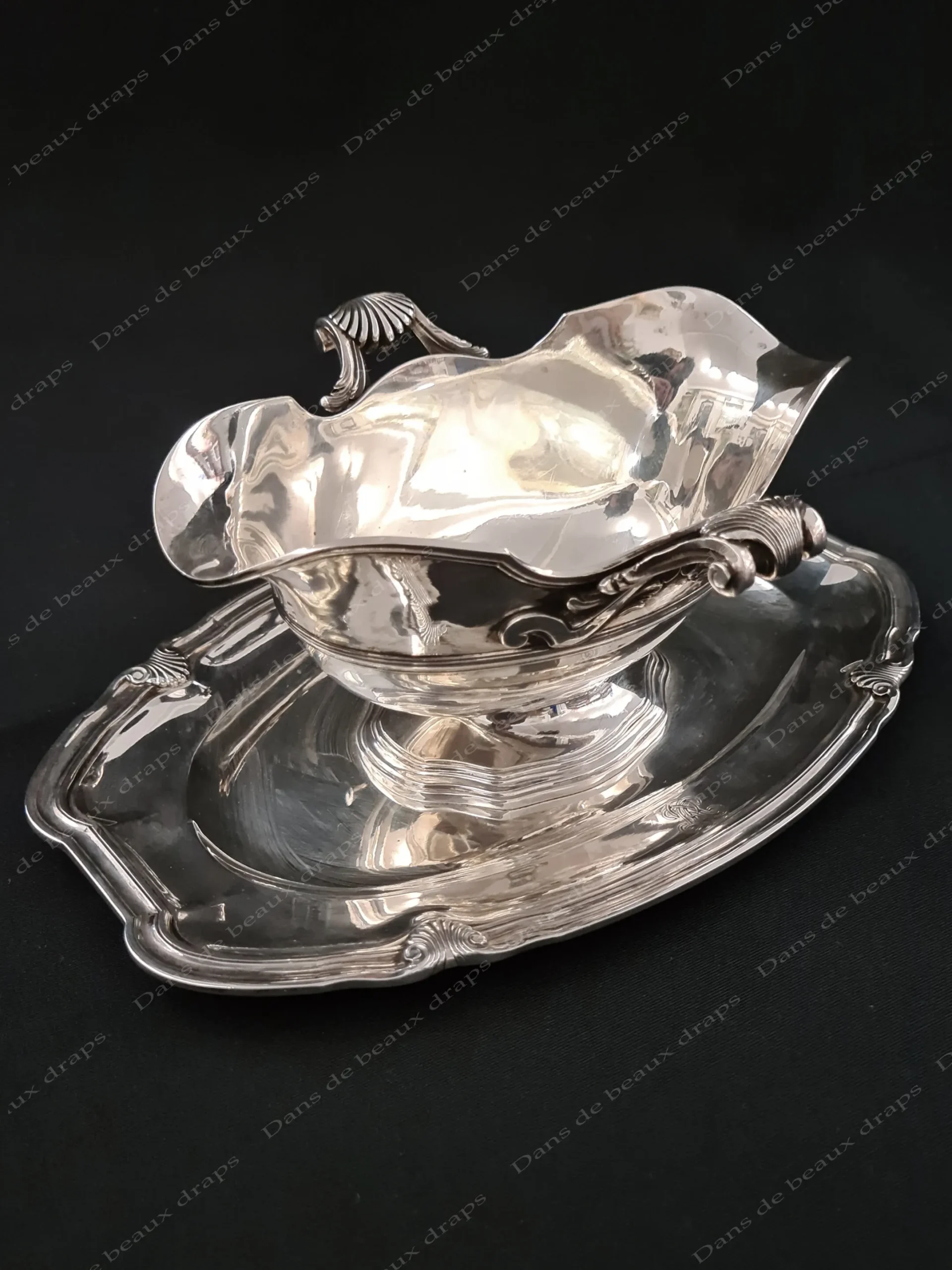 Très belle saucière en argent à plateau adhérent,poinçon minerve,orfèvre Puiforcat.