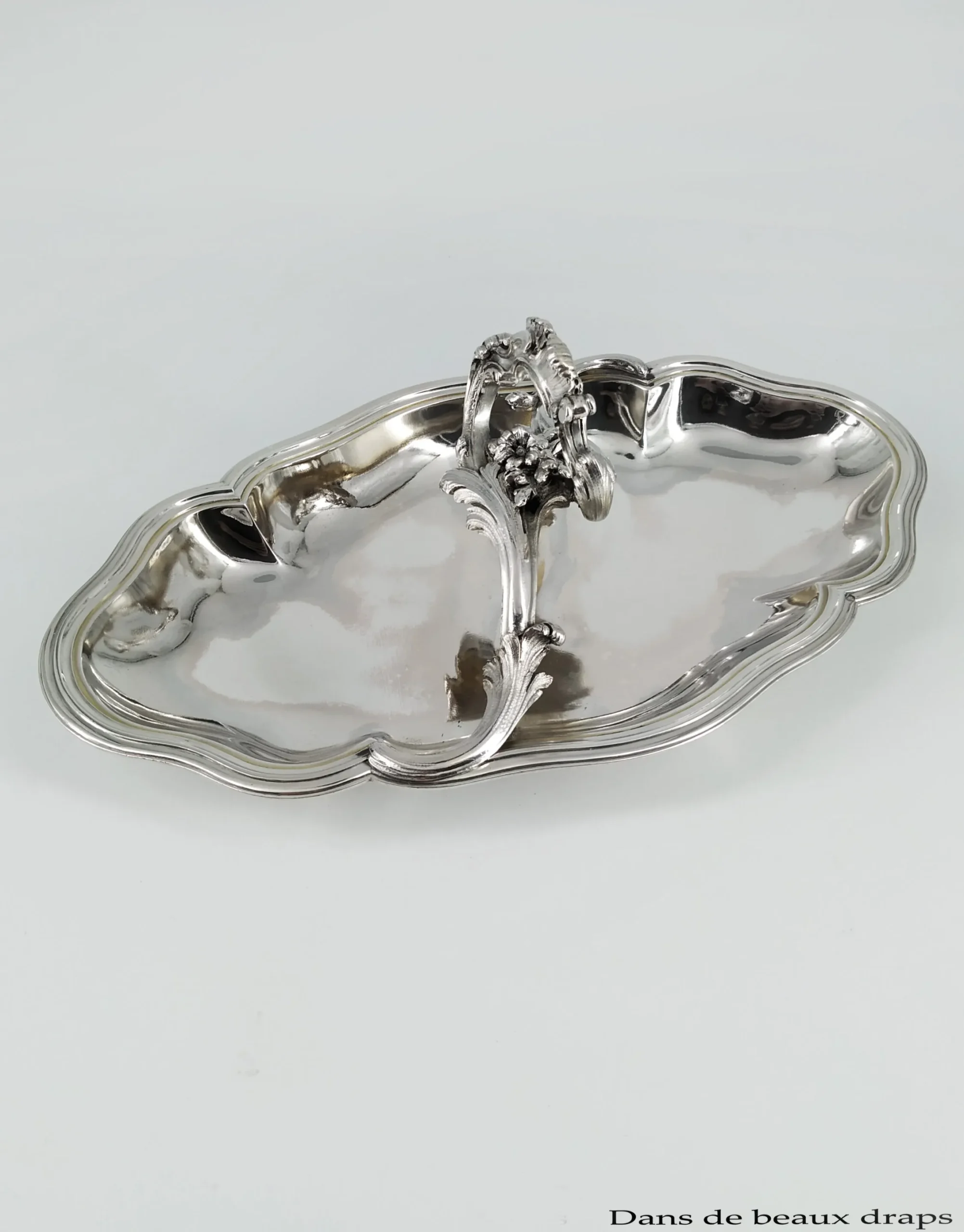 Très joli vide poche ou présentoir à doubles compartiments en argent modèle filet contour, époque 1900