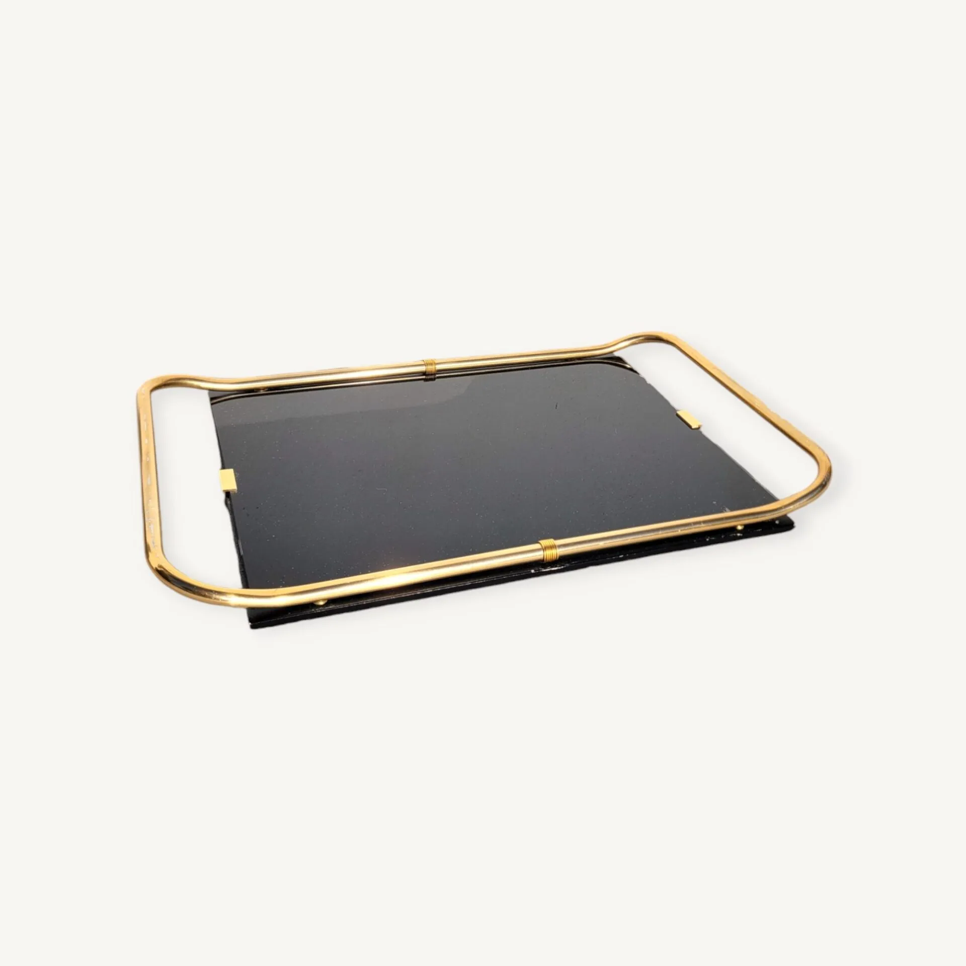 Plateau de service noir et doré vers 1960