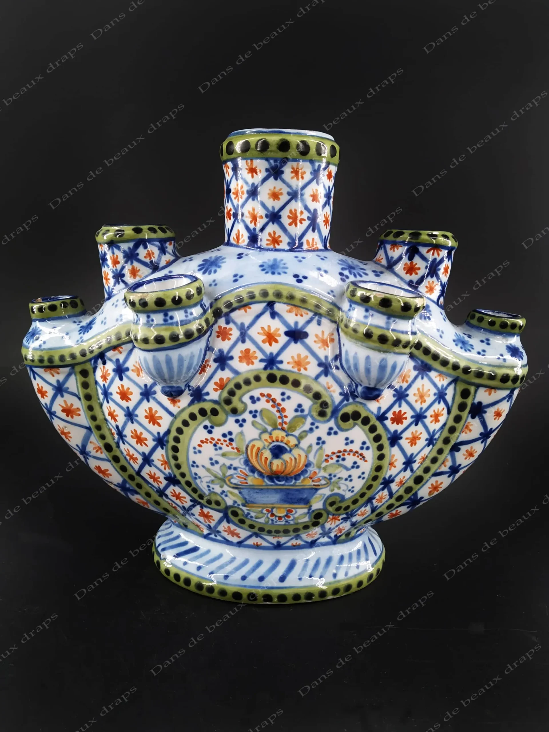 Superbe bouquetière en faïence de St Clément à décor polychrome.