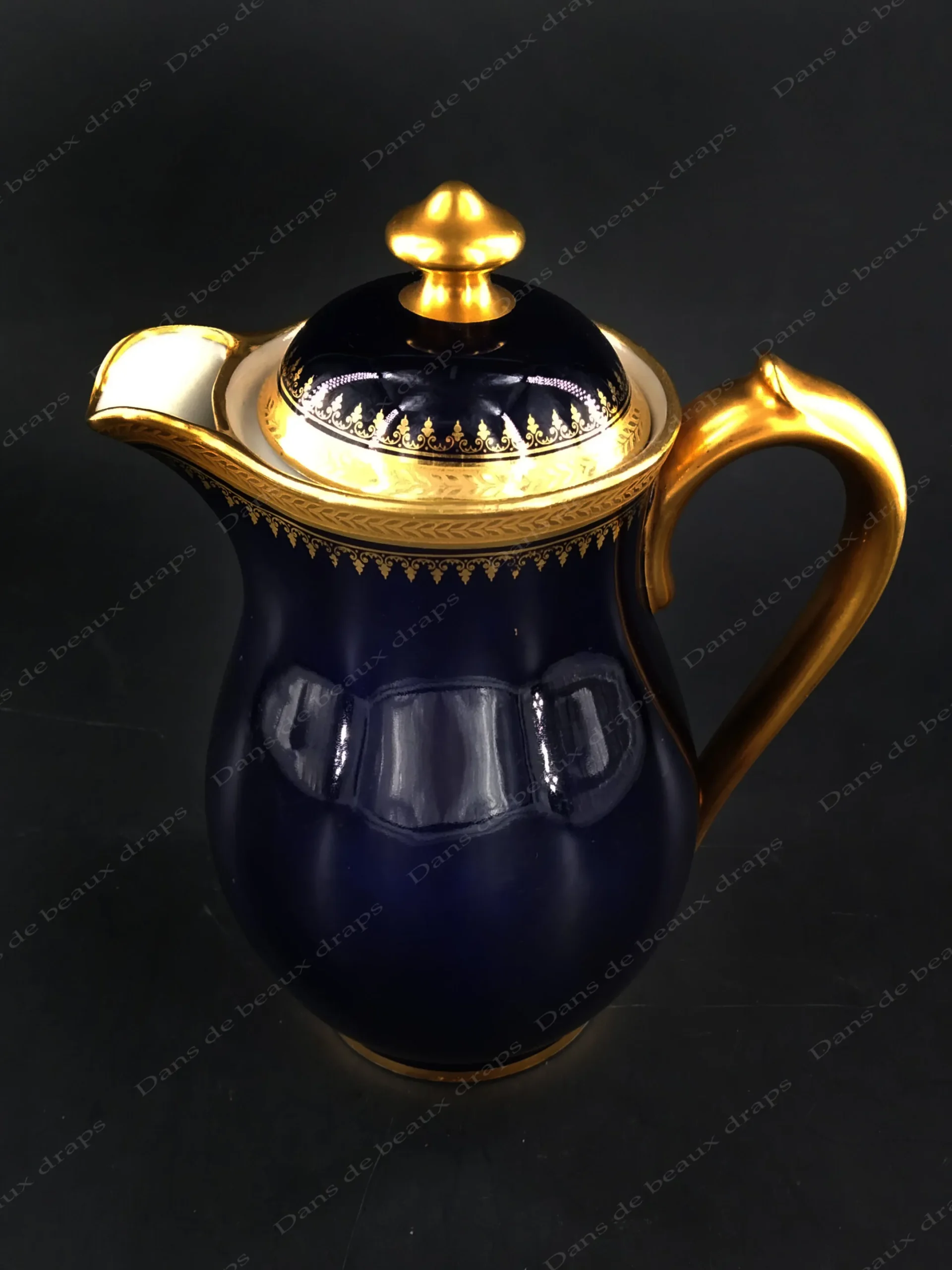 Cafetière en porcelaine bleu de four et or,maison Pallas ,Limoges.