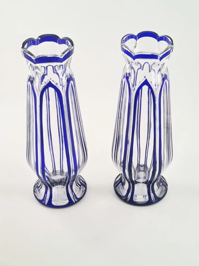 Magnifique paire de vases en cristal de Saint Louis doublés bleus