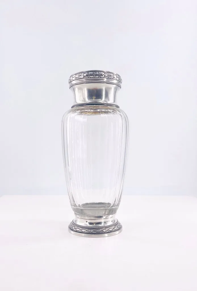 Magnifique vase en cristal de Baccarat, monture argent, orfèvre Puiforcat