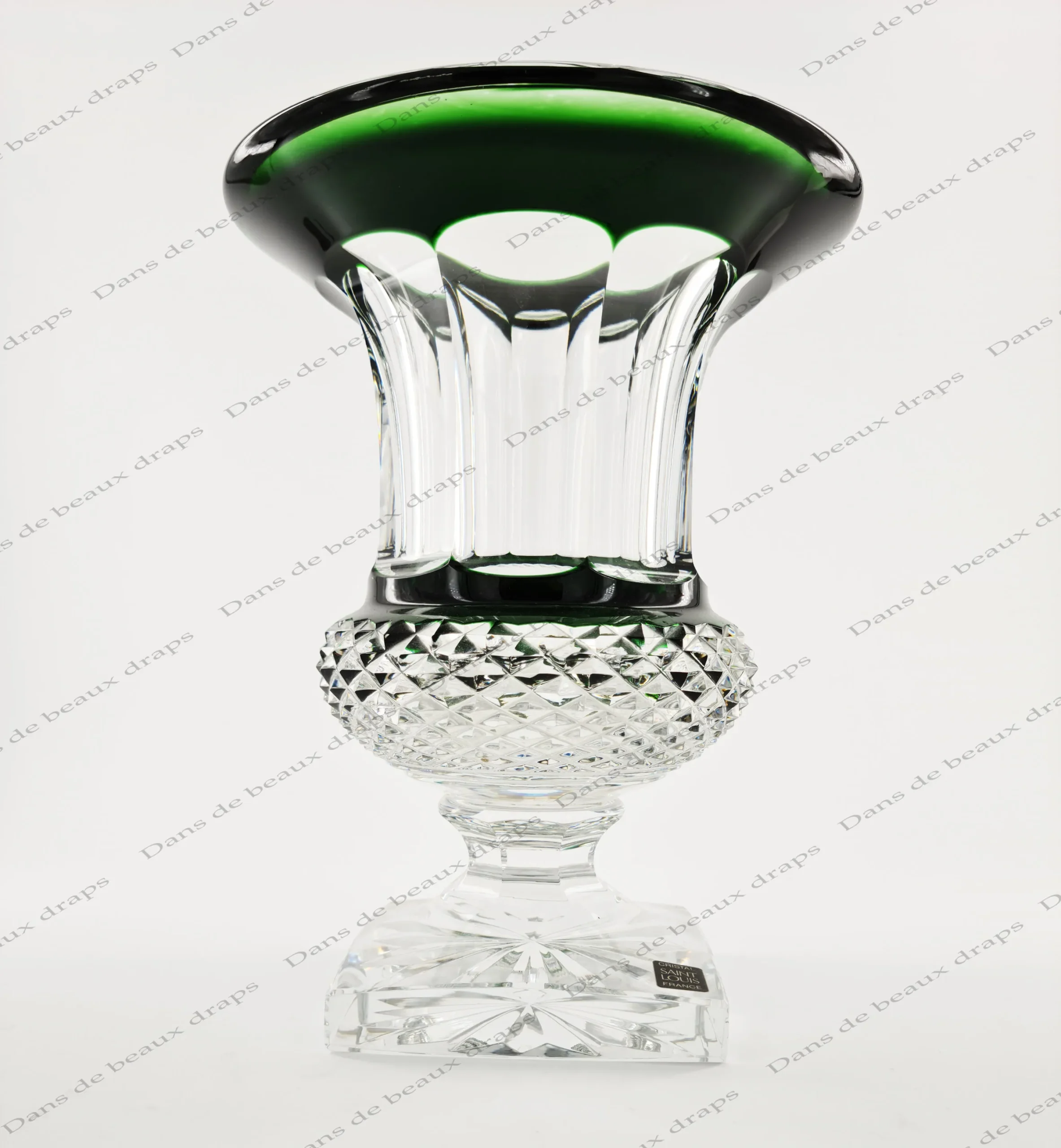 Magnifique vase en cristal taillé doublé vert, cristallerie de Saint Louis, modèle Versailles.