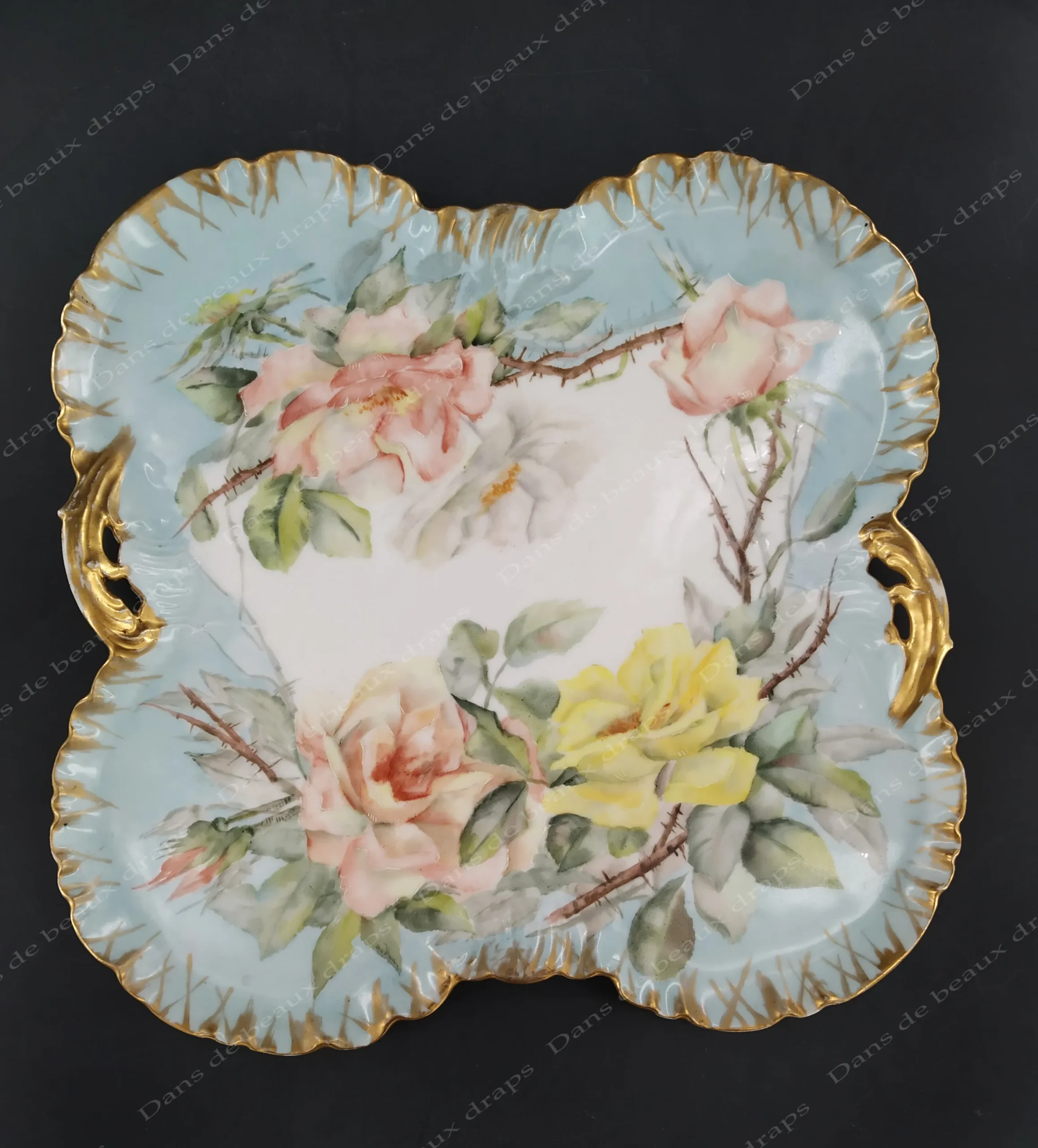 Très joli plateau en porcelaine de Limoges à décor floral.