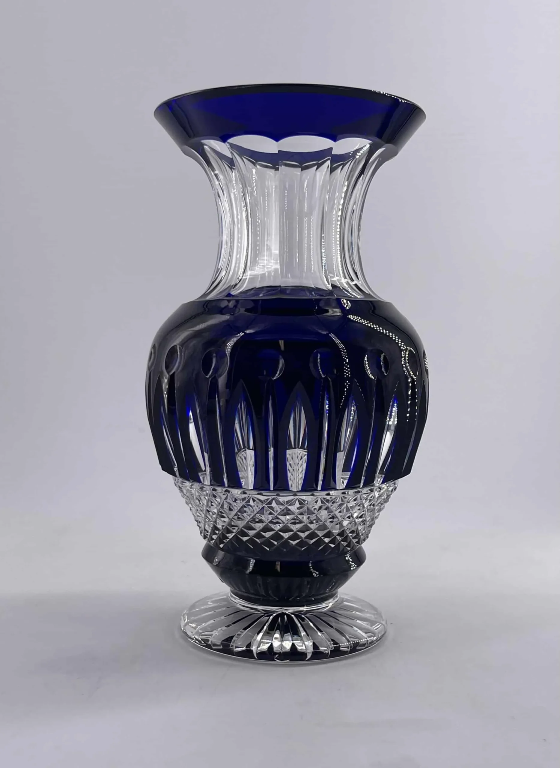 Superbe vase en cristal doublé bleu, Saint Louis, modèle Tommy