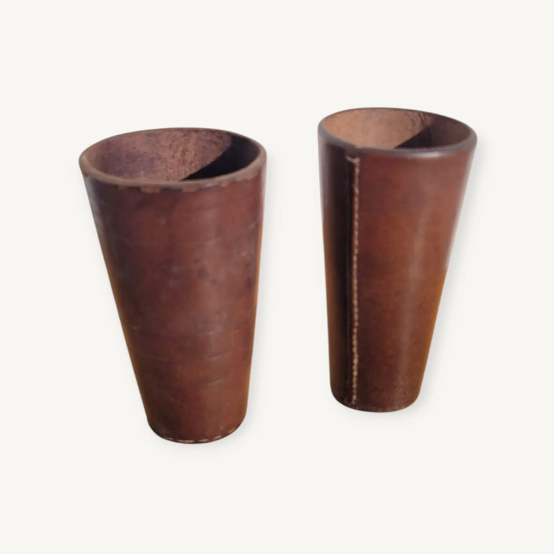 Paire d’anciens gobelets de jeux en cuir
