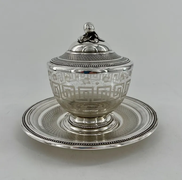 Magnifique bonbonnière ou confiturier en cristal de Baccarat et métal argenté, fin XIXème.