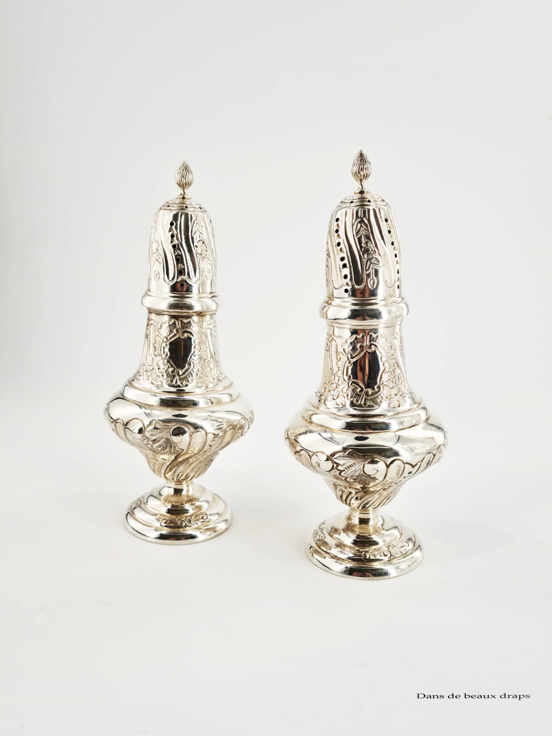Jolie paire de saupoudreuses en argent