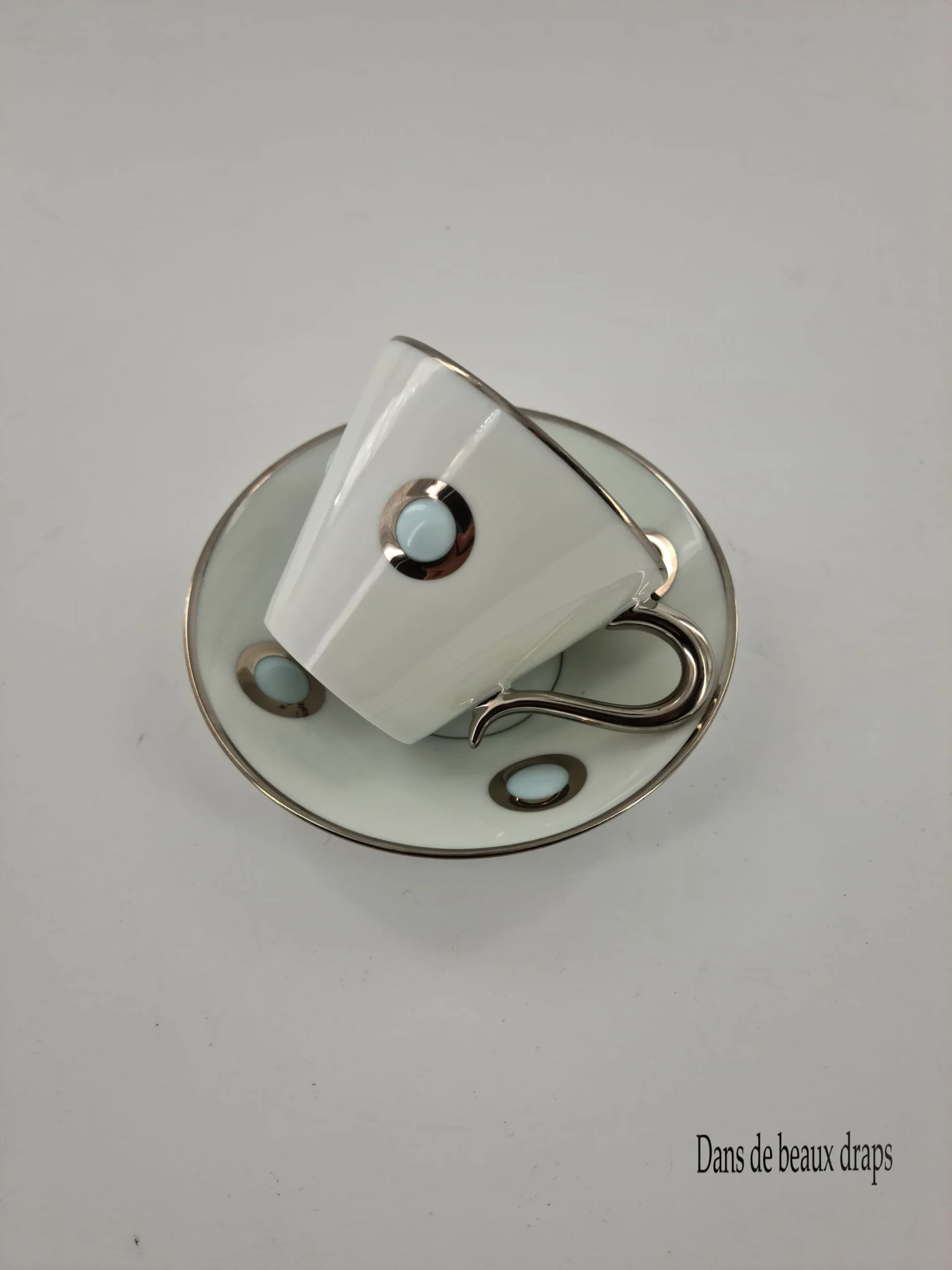 Magnifique paire-tasse à café en porcelaine de Limoges, maison Bernardaud, modèle Ithaque Platine