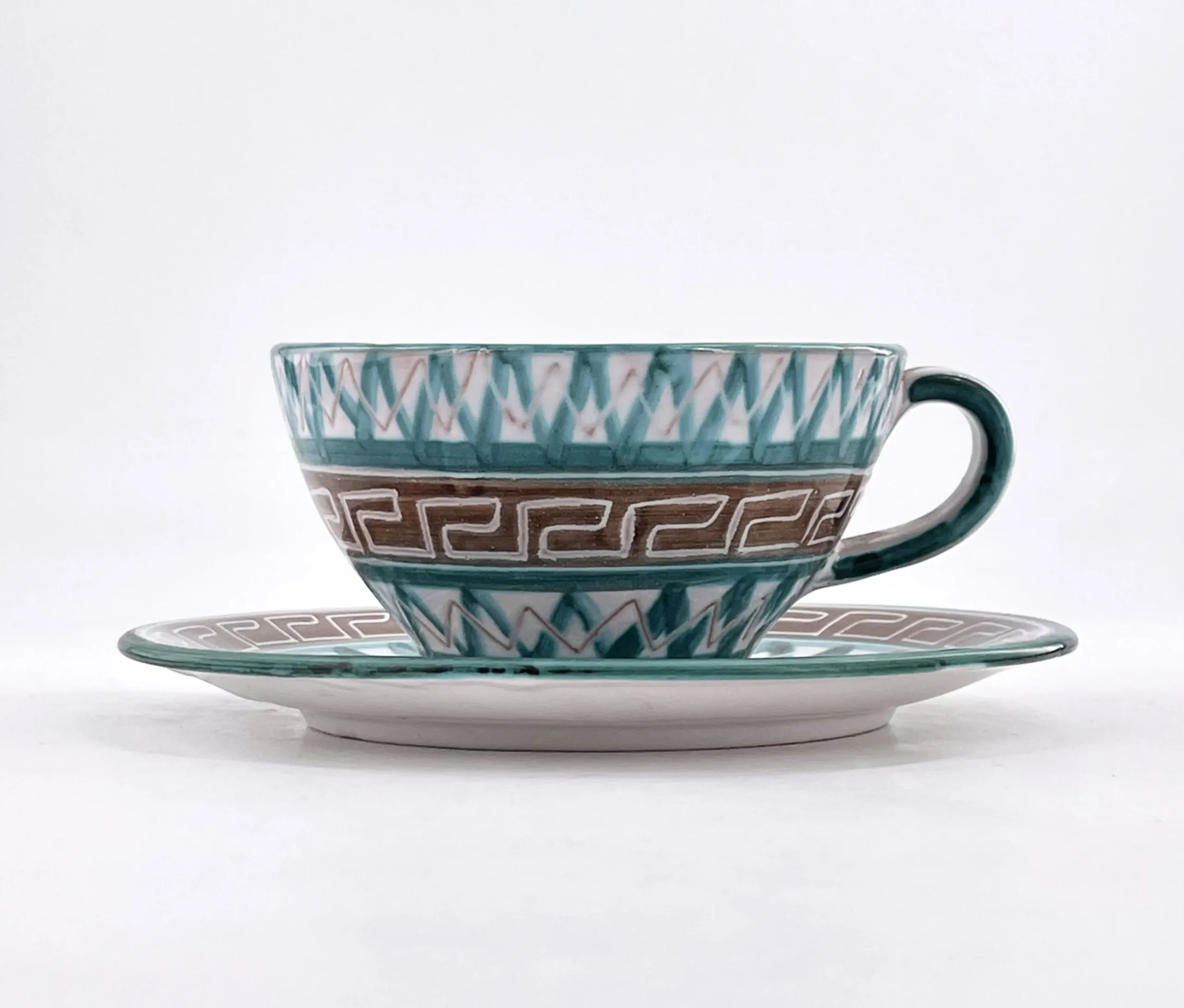 Paire-tasse à déjeuner en céramique émaillée , Robert Picault, Vallauris.