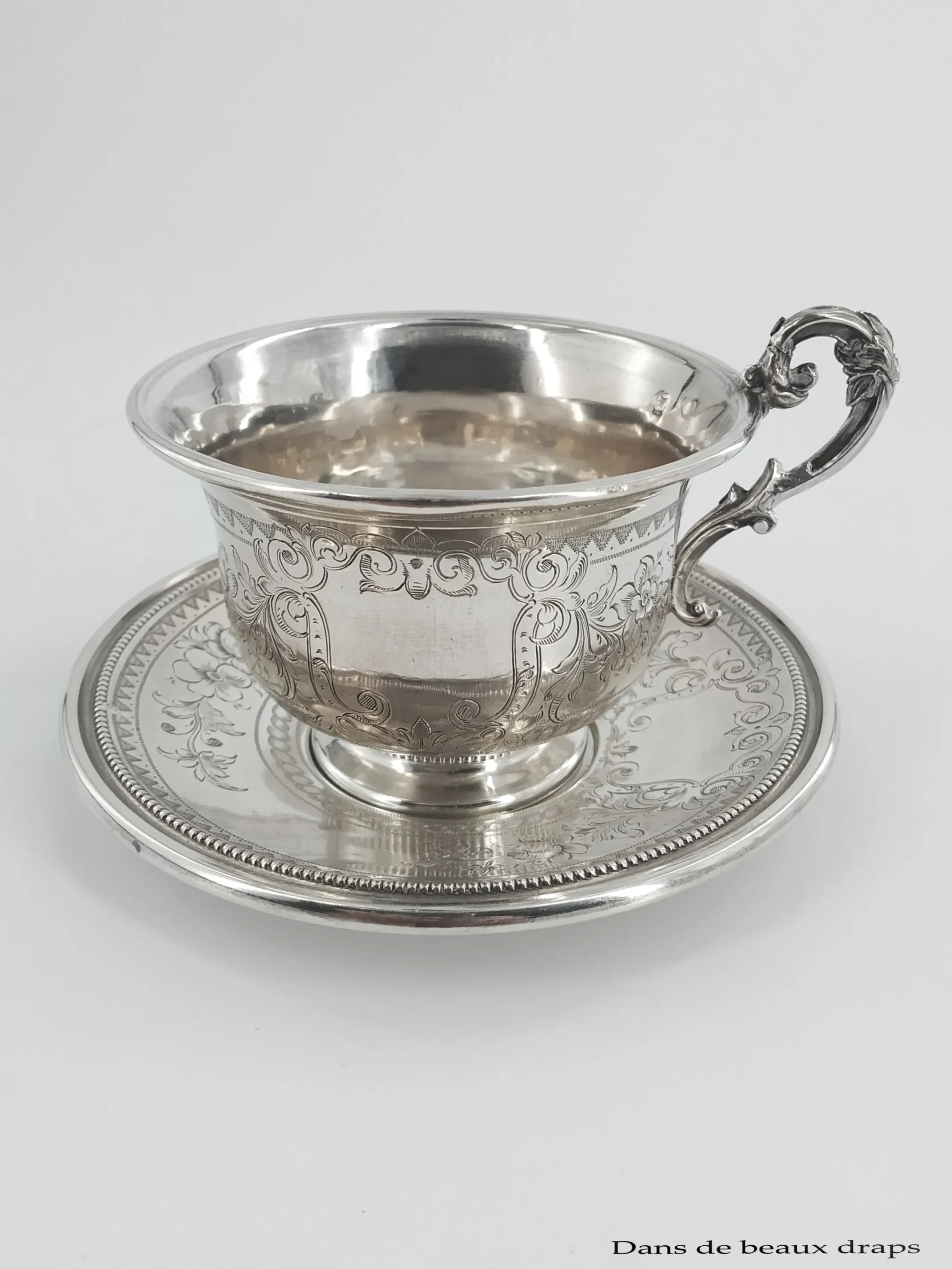 Jolie paire tasse à thé en argent , XIXème