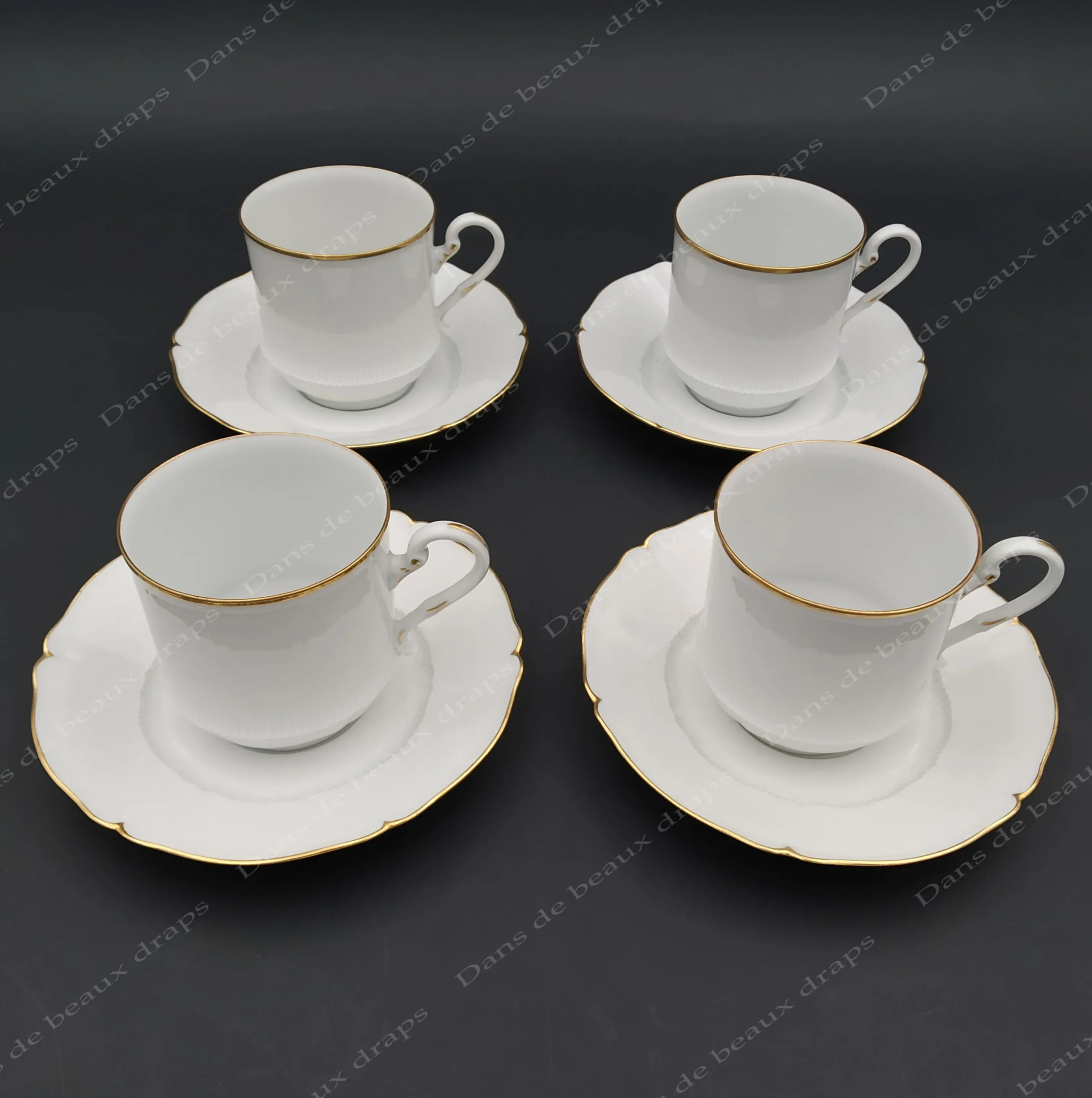 Magnifique suite de 8 paire-tasses à thé en porcelaine de Limoges