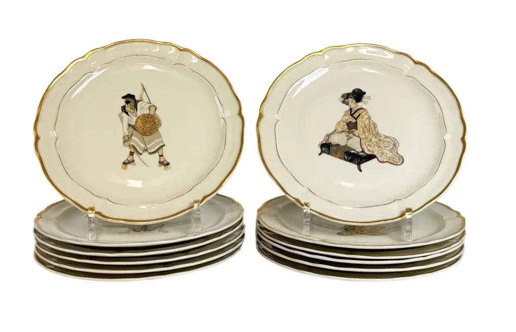 Magnifique service à dessert en faïence de Creil et Montereau , modèle Japon , 22 pièces