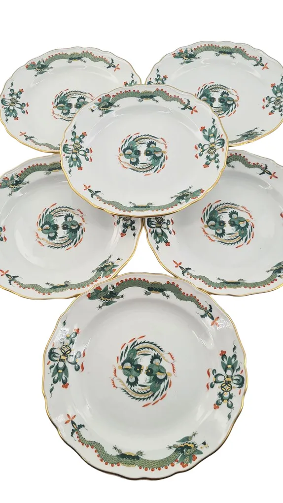Suite de 6 assiettes à dessert en porcelaine de Meissen, modèle » Dragon Vert »