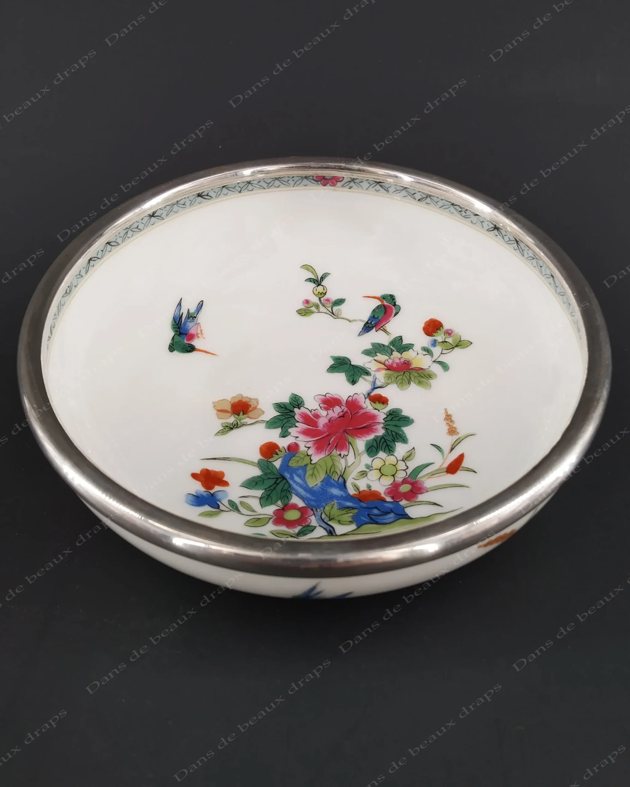 Très jolie coupelle en porcelaine de Limoges et argent, maison Raynaud,orfèvre Puiforcat.