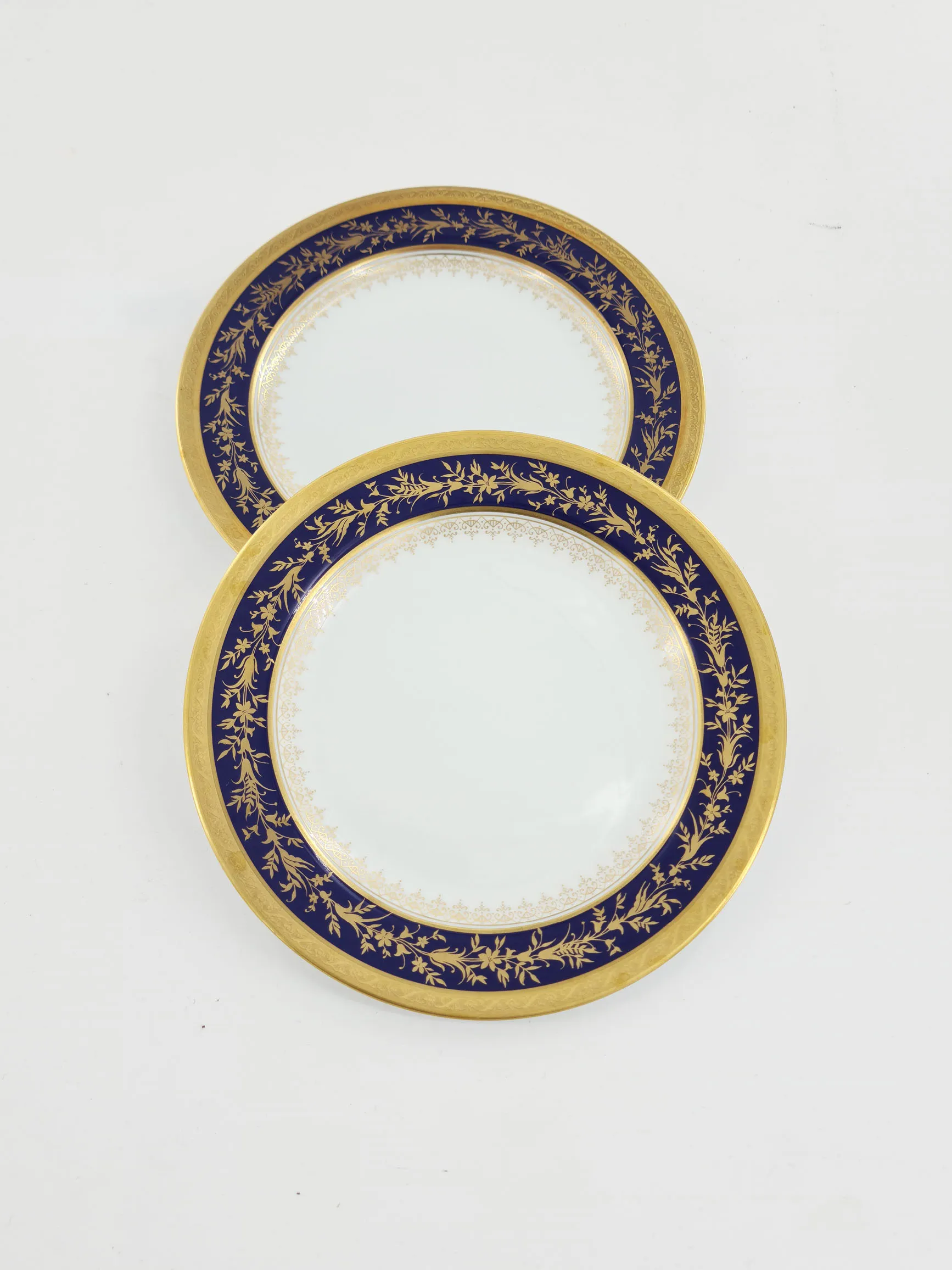 Jolie paire d’assiettes à dessert en porcelaine de Limoges, maison Bernardaud