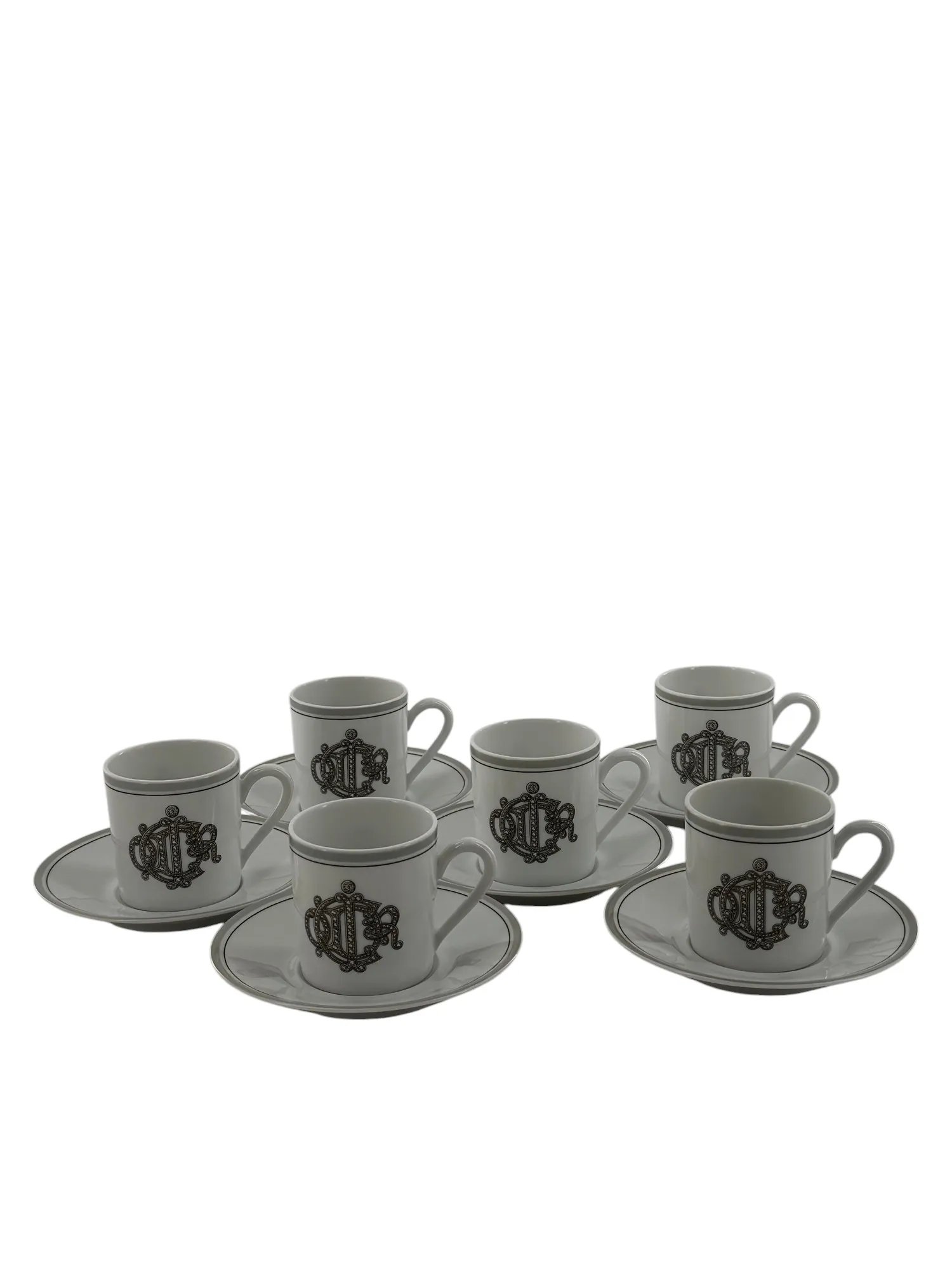 Suite de 6 paire-tasses à café en porcelaine de Limoges, maison Dior