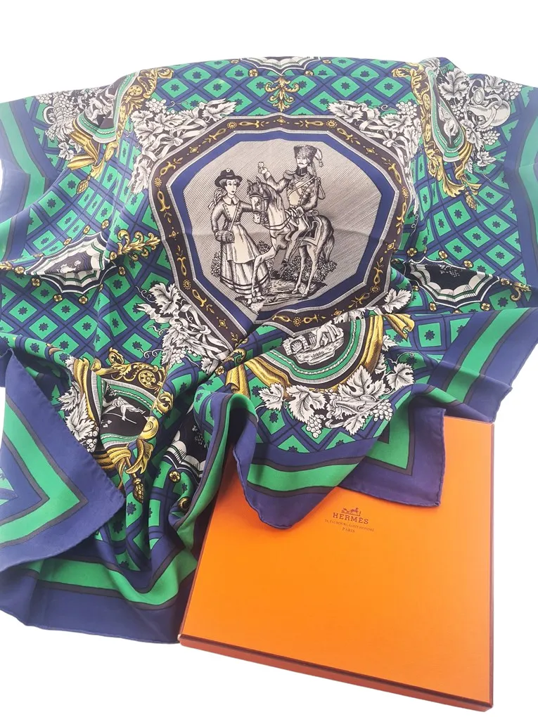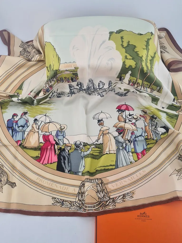 Rare foulard Hermès modèle » Promenade à Versailles », design Hugo Grygkar, 1953