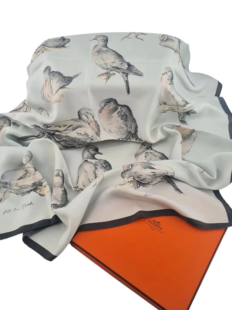 Rare foulard Hermès modèle » Tourterelles », design Xavier de Poret, 1956